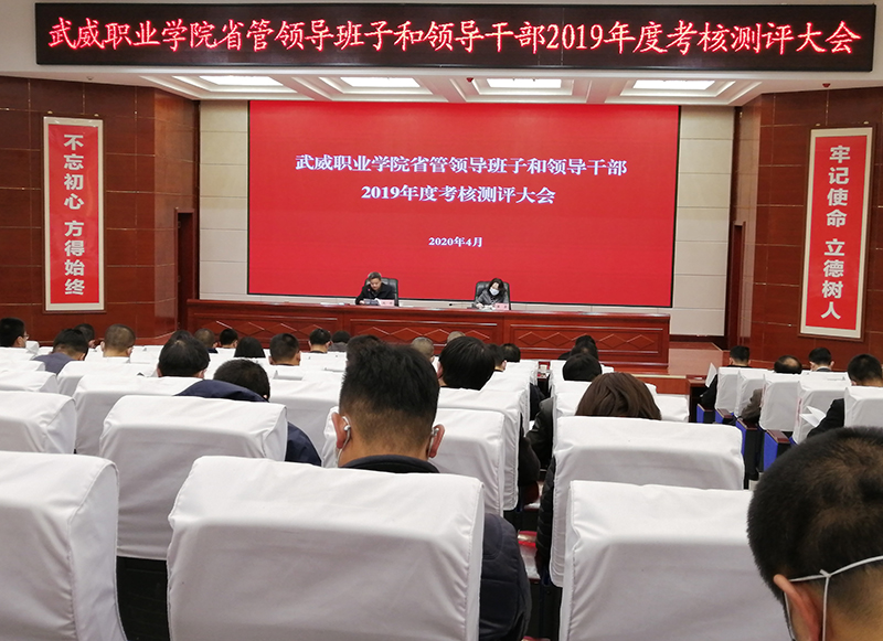 按照省委考核工作安排,4月1日上午,武威職業(yè)學(xué)院2019年度省管領(lǐng)導(dǎo)班子和領(lǐng)導(dǎo)干部考核工作會(huì)議在大學(xué)生活動(dòng)中心菁英廳召開。省委第三考核組組長(zhǎng)、省委組織部干部三處四級(jí)調(diào)研員雍蕭,考核組成員黃曉峰、馬振坤、景誠(chéng)、陶永超、王彤一行6人出席會(huì)議。學(xué)院領(lǐng)導(dǎo)班子成員,副科級(jí)及以上中層干部代表,副高級(jí)及以上職稱人員代表,人大代表、政協(xié)委員、民主黨派和教職工代表參加會(huì)議。學(xué)院黨委書記、院長(zhǎng)趙明主持會(huì)議。