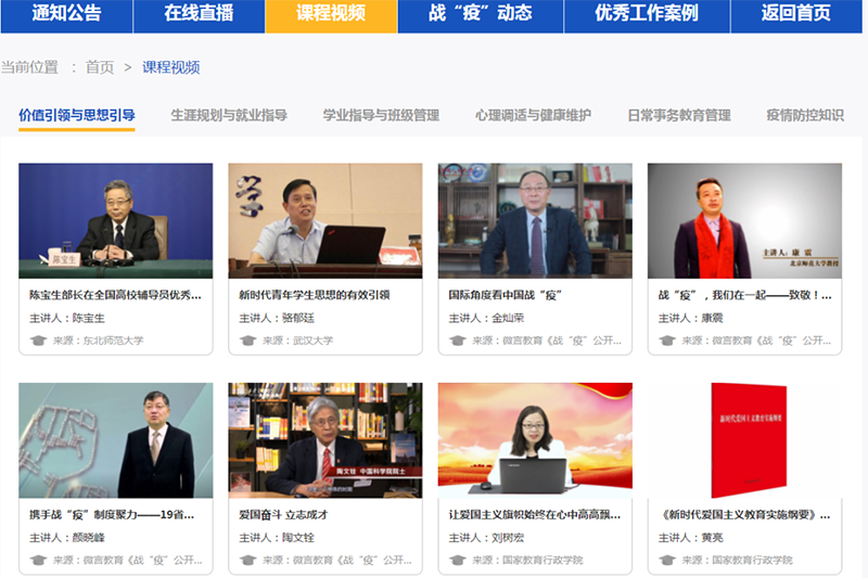 為推進當前教育系統(tǒng)疫情防控和學(xué)生思想政治教育工作,由教育部主辦,高校思想政治工作隊伍培訓(xùn)研修中心承辦的“共抗疫情顯擔(dān)當,愛國力行育新人”全國高校輔導(dǎo)員網(wǎng)絡(luò)培訓(xùn)示范班開班。