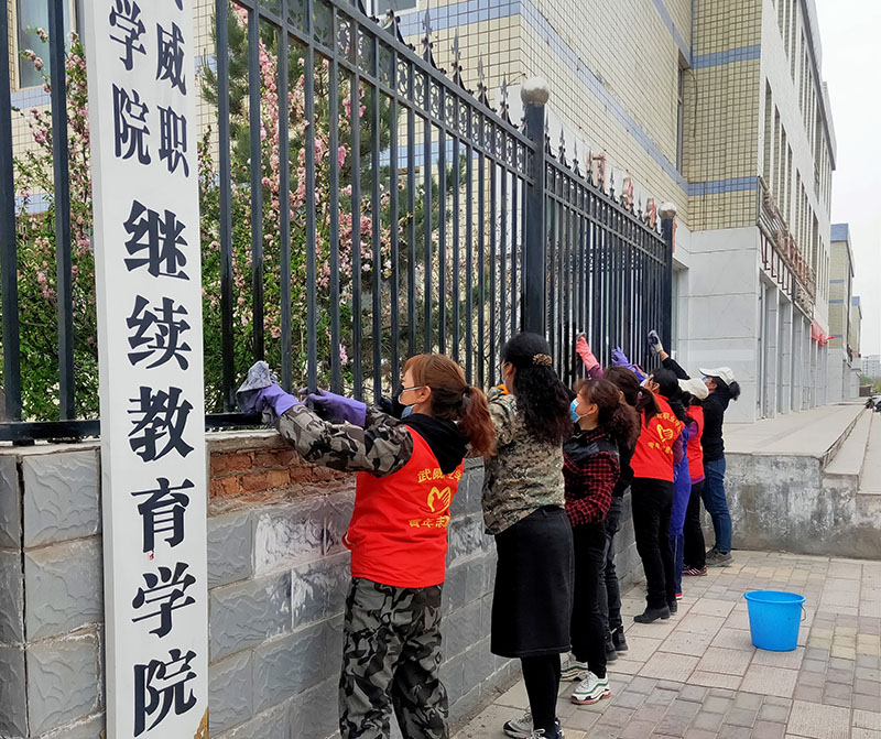 為扎實(shí)開展“三整治”“三提升”行動(dòng),有效改善城區(qū)環(huán)境,進(jìn)一步提升校園品質(zhì),建設(shè)文明校園,助力全國(guó)文明城市創(chuàng)建,為師生返校創(chuàng)造干凈、整潔、衛(wèi)生的學(xué)習(xí)工作和生活環(huán)境。按照涼州區(qū)城市管理委員會(huì)通知,結(jié)合學(xué)院實(shí)際,4月15日起,學(xué)院后勤處經(jīng)過排查,組織教職工及保潔工作人員全面開展校園“清潔亮妝”行動(dòng)。