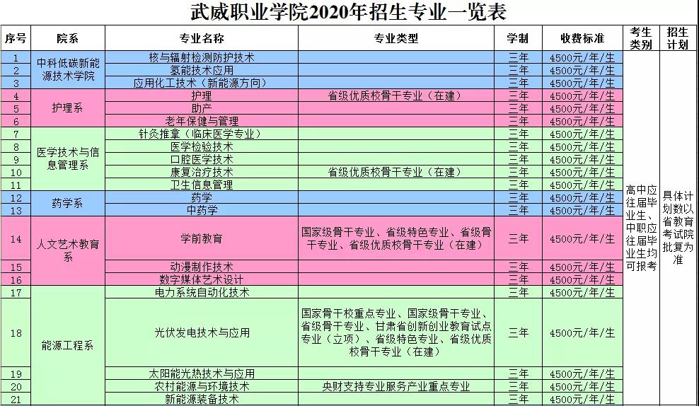 武威職業(yè)學院2020年招生專業(yè)
