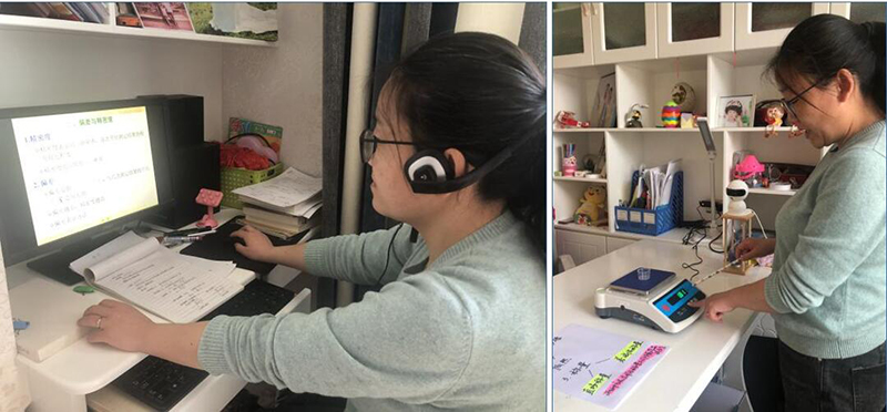 中科低碳新能源學(xué)院積極組織教研活動解決專業(yè)課程在線教學(xué)難題。李春蘭老師在《分析化學(xué)》教學(xué)中通過視頻直播為學(xué)生展示低精度電子天平使用過程,為后續(xù)到校實(shí)踐教學(xué)開展打好基礎(chǔ)。