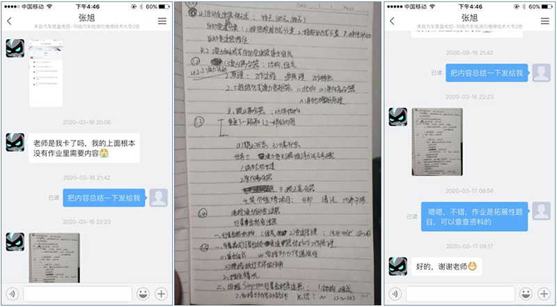 現(xiàn)代農(nóng)業(yè)技術(shù)系和汽車工程系的幾位學(xué)生春節(jié)前外出打工時(shí),因疫情爆發(fā)未能及時(shí)返回,被滯留當(dāng)?shù)?。疫情緩和后企業(yè)復(fù)工,學(xué)生為了能按時(shí)參加在線學(xué)習(xí),努力克服了時(shí)間不足、上網(wǎng)不便、網(wǎng)絡(luò)卡頓等諸多問題,白天工作、晚上學(xué)習(xí),刻苦的身影令人動容。