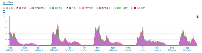 通過對學(xué)院在線教學(xué)平臺后臺數(shù)據(jù)進(jìn)行分析,本周內(nèi)已開課程新增教學(xué)課件1227個(gè),發(fā)布教學(xué)視頻1293個(gè),教師上傳課堂練習(xí)題2523道,布置課后作業(yè)3041道,極大的補(bǔ)充和豐富了學(xué)院在線課程資源。