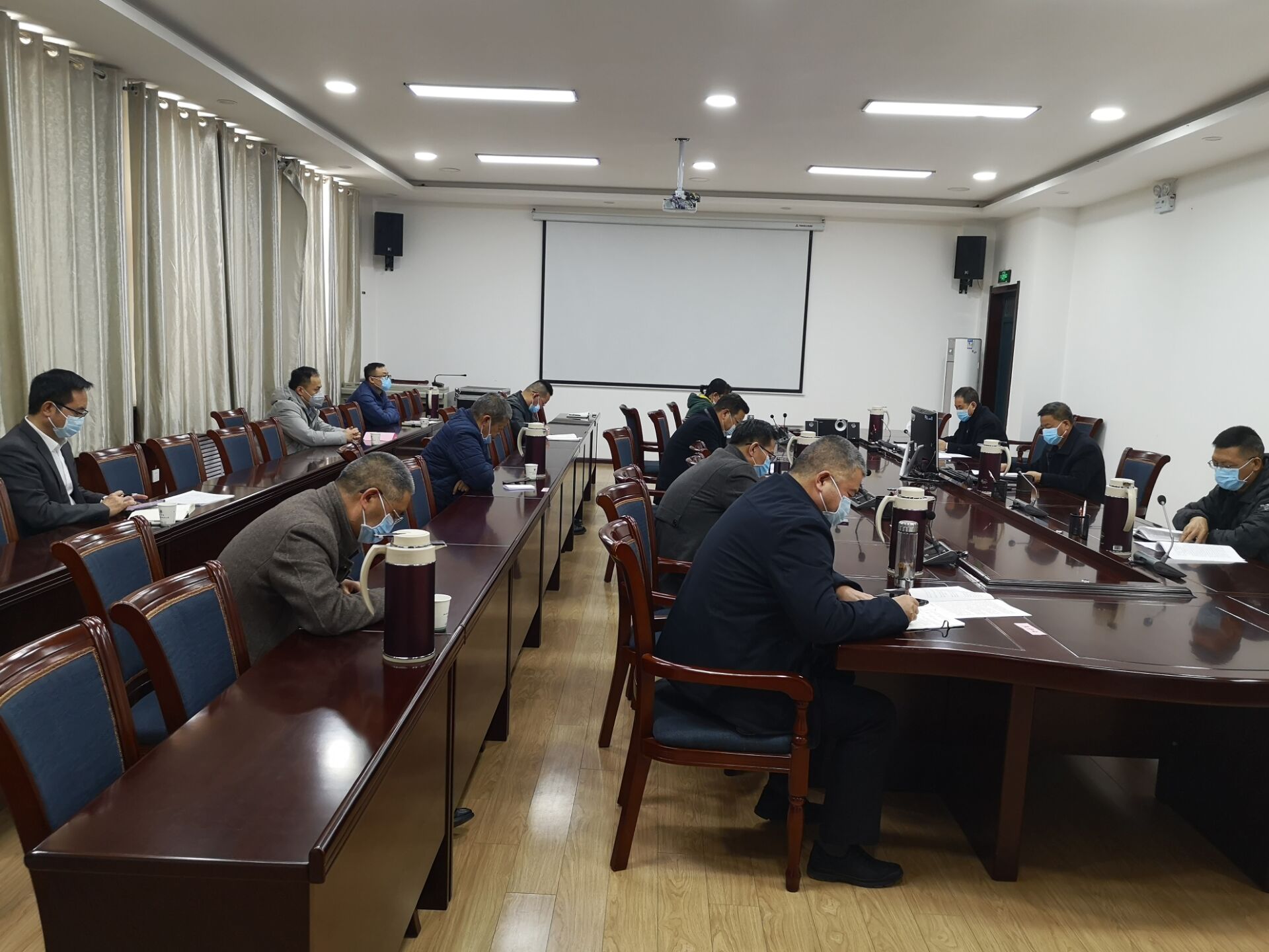 3月13日,學(xué)院在行樹樓210會(huì)議室召開疫情聯(lián)防聯(lián)控工作領(lǐng)導(dǎo)小組會(huì)議,對(duì)近期疫情防控工作、線上教學(xué)工作及脫貧攻堅(jiān)幫扶工作進(jìn)行再安排再部署再要求。學(xué)院疫情聯(lián)控領(lǐng)導(dǎo)小組組長(zhǎng)、學(xué)院黨委書記、院長(zhǎng)趙明主持會(huì)議,領(lǐng)導(dǎo)小組副組長(zhǎng)、黨委副書記翟存祥,黨委委員、副院長(zhǎng)王永緒、田迎春,黨委委員、紀(jì)委書記、監(jiān)察專員陳曉煜,黨委委員、副院長(zhǎng)張開禮、王守云及領(lǐng)導(dǎo)小組辦公室成員參加會(huì)議。
