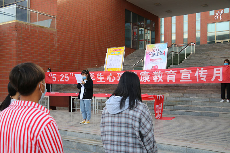 儀式上,學生工作處負責人對本次系列活動作了具體安排,希望各班級能積極配合,按照學院下發(fā)的心理健康教育方案,高質量完成各項工作,共同做好疫情期間同學們心理防護;學生代表宣讀了5.25心理健康日活動倡議書,倡導大家要關愛自己,了解自我,關注自己的心理健康和心靈成長,提高自身心理素質和保健能力。