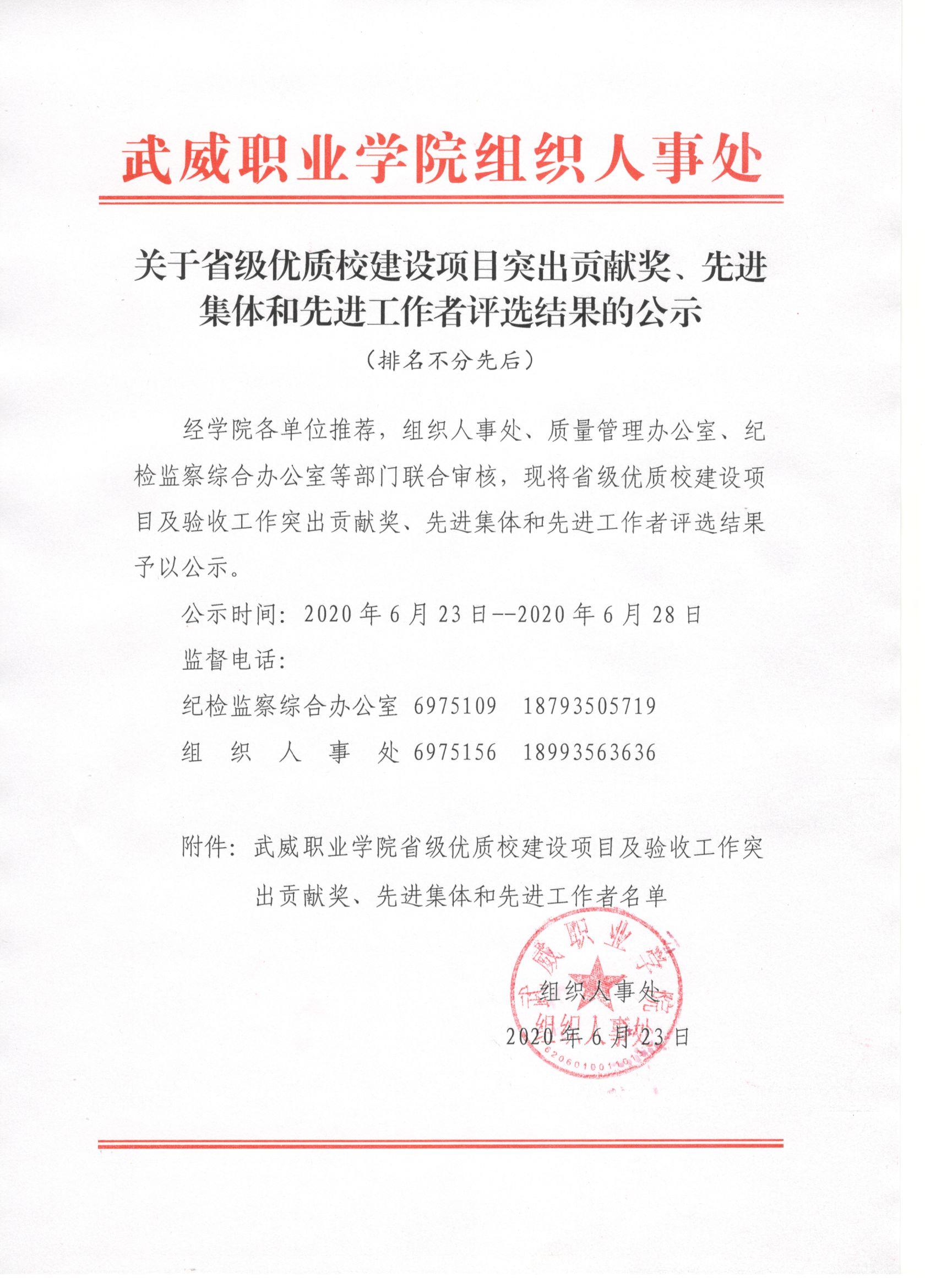 關于省級優(yōu)質(zhì)校建設項目突出貢獻獎、先進集體和先進工作者評選結果的公示