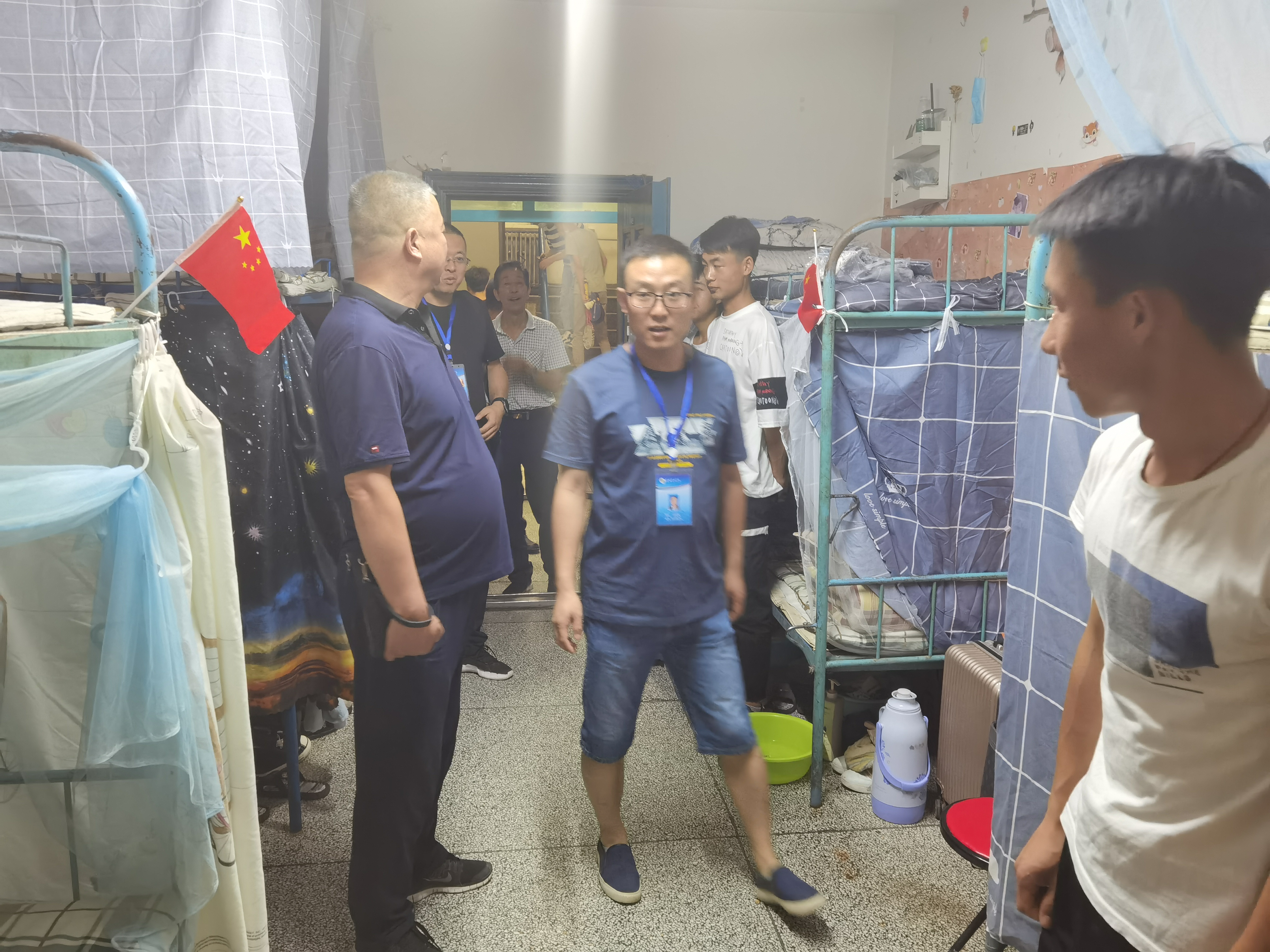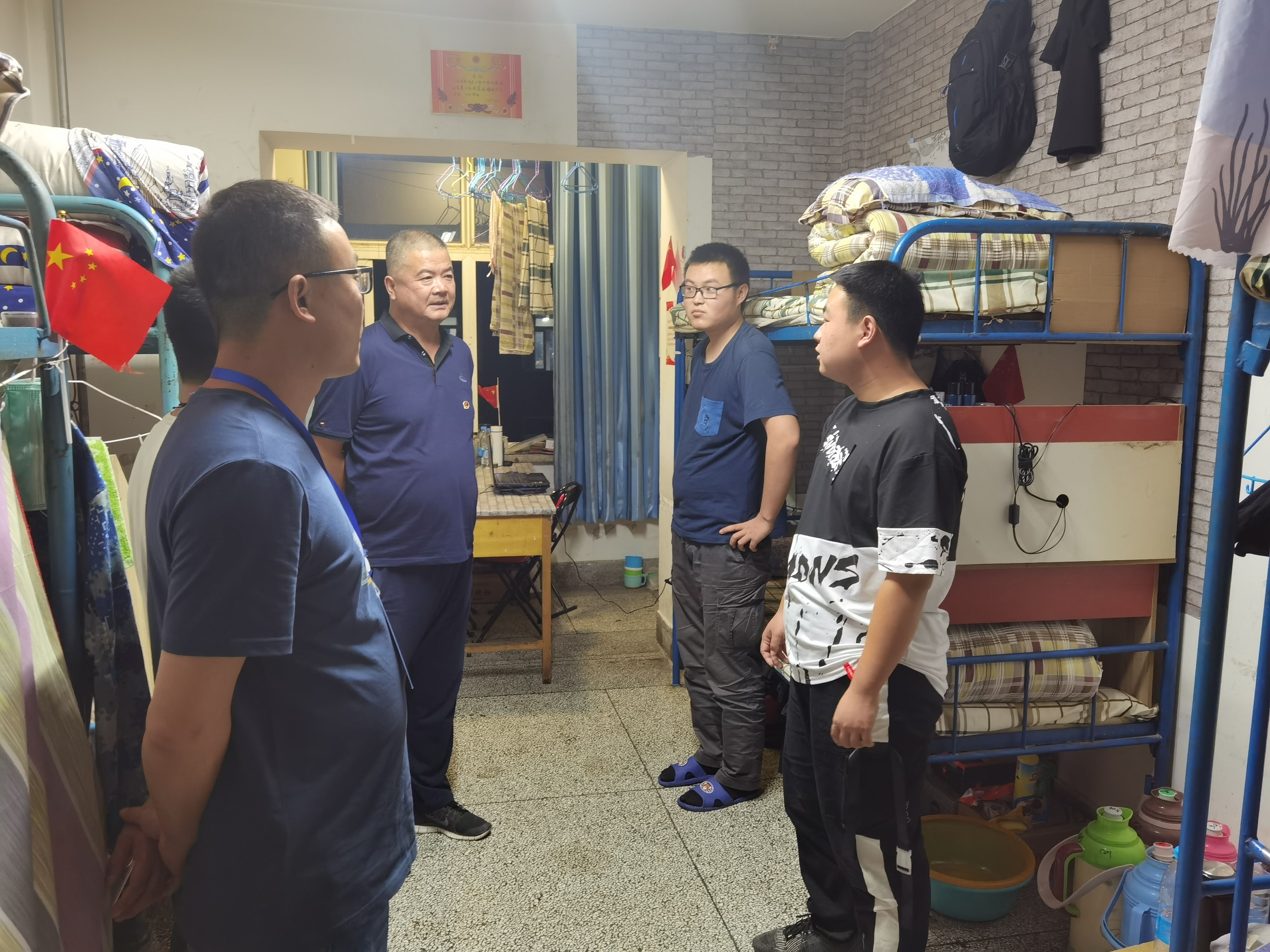 ? 6月26日晚,學(xué)院副院長王守云,保衛(wèi)處處長王政,學(xué)工處副處長高鵬堂,教師姚斌一行深入我系學(xué)生宿舍,實地視察和慰問我系返校學(xué)生生活狀態(tài)。