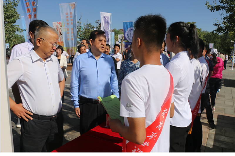 活動(dòng)現(xiàn)場(chǎng),學(xué)院制作展示了愛糧節(jié)糧主題展板,組織志愿者向市民發(fā)放倡議書1000余份。市委書記柳鵬一行來到學(xué)院展區(qū)參觀指導(dǎo)工作,柳鵬詳細(xì)詢問了學(xué)生食堂日常浪費(fèi)情況和學(xué)院文明就餐教育工作,并對(duì)學(xué)院教育引導(dǎo)工作予以肯定,勉勵(lì)同學(xué)們要帶頭發(fā)揚(yáng)優(yōu)良傳統(tǒng),珍惜每一粒糧食,杜絕浪費(fèi),當(dāng)好勤儉節(jié)約的排頭兵。