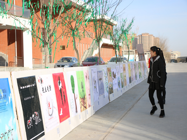 12月28日,人文藝術教育系“伸一雙手 護一片綠”主題公益海報展在大學生活動中心前廣場舉行。學院宣傳統(tǒng)戰(zhàn)部部長王繼林,人文藝術教育系黨總支書記胡靜峰出席開展儀式,美術教研室主任董有國及部分師生參加了展覽。