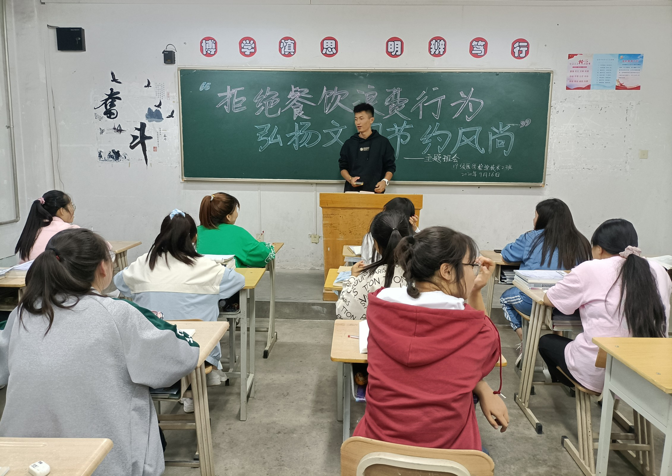 為深入貫徹落實習(xí)近平總書記關(guān)于制止餐飲浪費行為的重要指示精神,確保“光盤行動”取得實效,進一步引導(dǎo)我系學(xué)生大力弘揚勤儉節(jié)約傳統(tǒng)美德,培養(yǎng)勤儉節(jié)約良好習(xí)慣,全力營造“浪費可恥、節(jié)約光榮”的濃厚氛圍,醫(yī)學(xué)技術(shù)與信息管理系于9月16日各教學(xué)班召開主題班會活動。