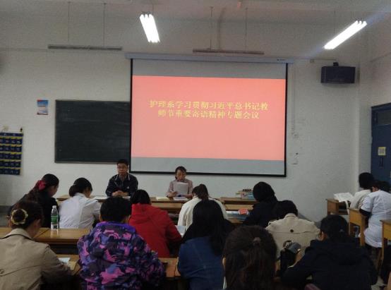 會(huì)上,護(hù)理系主任韓曉萍領(lǐng)學(xué)了《習(xí)近平總書記教育重要論述講義》,重溫了總書記教師節(jié)重要寄語及精神。她指出,全體教職員工要牢記習(xí)近平總書記“不忘立德樹人初心,牢記為黨育人、為國(guó)育才使命”的責(zé)任擔(dān)當(dāng),積極探索,在教書育人的崗位上不斷作出新的重大貢獻(xiàn)。她要求,每位教職員工撰寫一篇學(xué)習(xí)心得體會(huì),提高認(rèn)識(shí),牢記使命,立足實(shí)際,為黨和國(guó)家培育社會(huì)主義建設(shè)者和接班人。