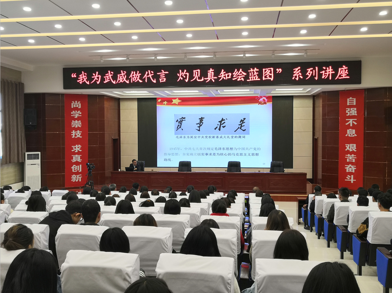 3月16日,武威職業(yè)學院“綠洲講壇”第12期在學院菁英廳舉行,本期活動邀請到中國社科院哲學研究所副研究員、民勤縣委副書記周丹作主題為《掌握看家本領 堅定理想信念》的報告。學院領導班子、中層干部、師生代表220余人參加了報告會。