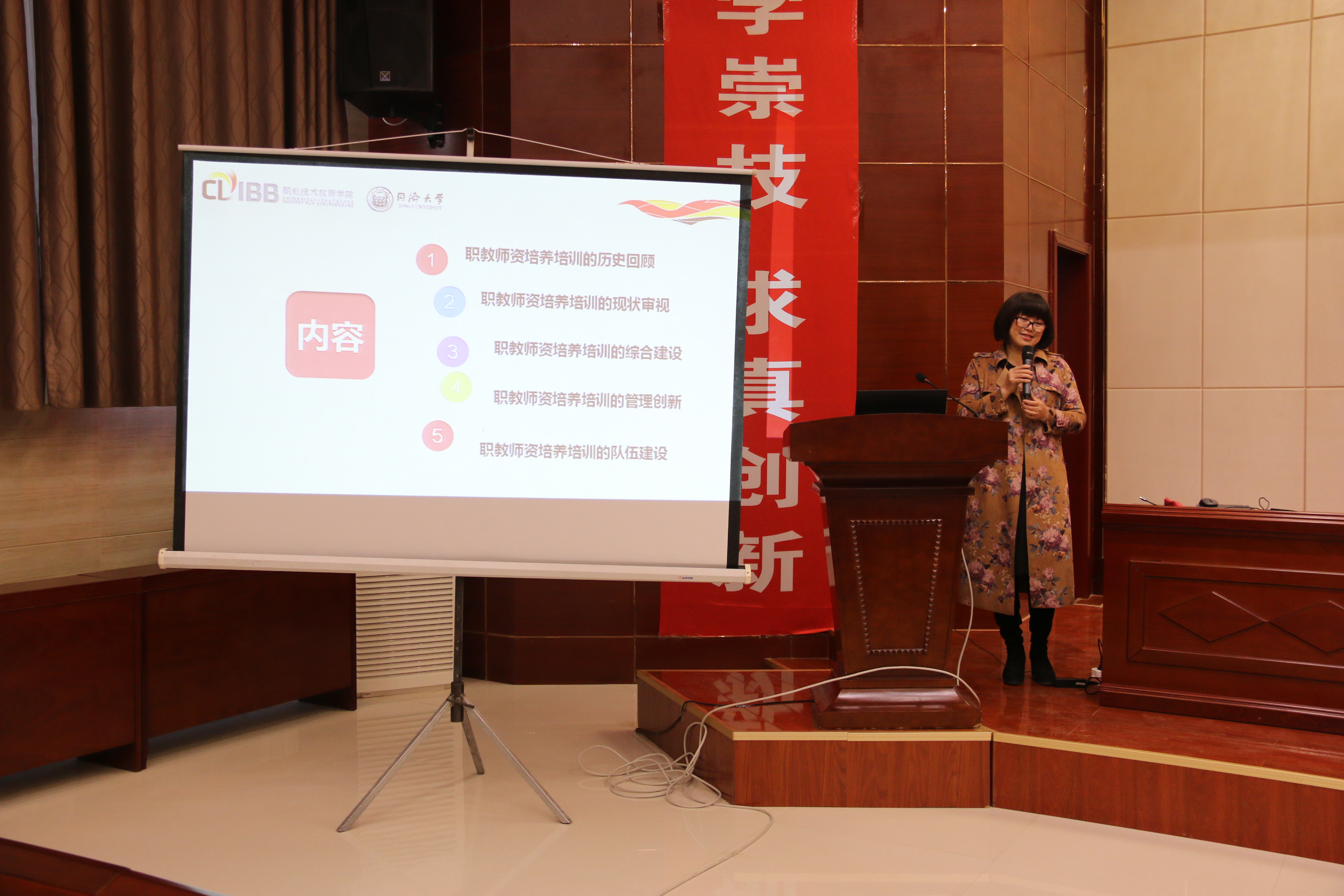 梅泓教授立足國家宏觀政策,以獨(dú)特的視角,從當(dāng)前中國經(jīng)濟(jì)發(fā)展新常態(tài)下的轉(zhuǎn)型與創(chuàng)新、職業(yè)教育新機(jī)遇的建設(shè)與創(chuàng)新及師資隊(duì)伍面臨的新挑戰(zhàn)與創(chuàng)新三個(gè)方面進(jìn)行了深度透析。梅泓教授語言幽默,理念新穎,會(huì)場氣氛熱烈。