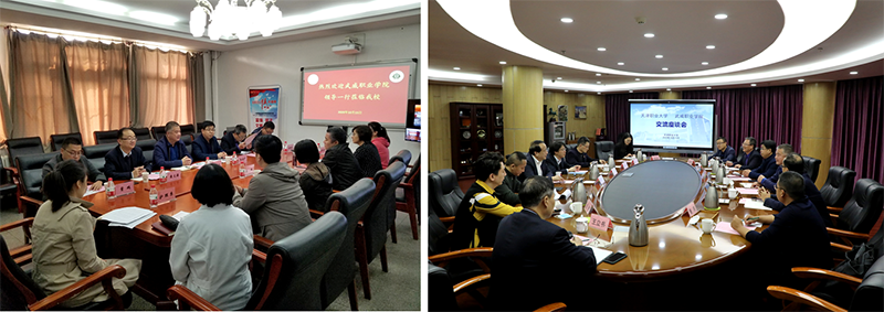 考察組一行分別與天津醫(yī)學(xué)高等專科學(xué)校、天津職業(yè)大學(xué)進(jìn)行了深入交流座談。天津醫(yī)高專是國家雙高校中唯一一所衛(wèi)生類學(xué)校,在座談會上,醫(yī)高專為學(xué)院醫(yī)藥衛(wèi)生類專業(yè)群建設(shè)提出了指導(dǎo)意見,介紹了醫(yī)高專“1.5+1.5”學(xué)制安排促就業(yè)、教學(xué)系黨委行政雙組長抓就業(yè)、就業(yè)工作經(jīng)費(fèi)動態(tài)調(diào)整引領(lǐng)就業(yè)的工作機(jī)制,并就下一步共同培養(yǎng)師資、互派青年骨干教師交流學(xué)習(xí)達(dá)成共識。天津職業(yè)大學(xué)是《天津—甘肅職業(yè)教育協(xié)作實(shí)施方案》合作院校,在天津職大座談會上,兩校圍繞專業(yè)群組群、產(chǎn)業(yè)學(xué)院組建模式、教學(xué)模式、探索產(chǎn)業(yè)學(xué)院建設(shè)、混合所有制二級學(xué)院建設(shè)、就業(yè)工作“一對一”模式、學(xué)生管理經(jīng)驗(yàn)和成果進(jìn)行了分享與交流。劉斌校長出席并主持會議,對學(xué)院的雙高建設(shè)給予了特別關(guān)心與指導(dǎo)。他希望,雙方作為兄弟院校,要進(jìn)一步加強(qiáng)交流合作,努力為推動?xùn)|西協(xié)作和武威職業(yè)教育高質(zhì)量發(fā)展做出新的更大的貢獻(xiàn)。