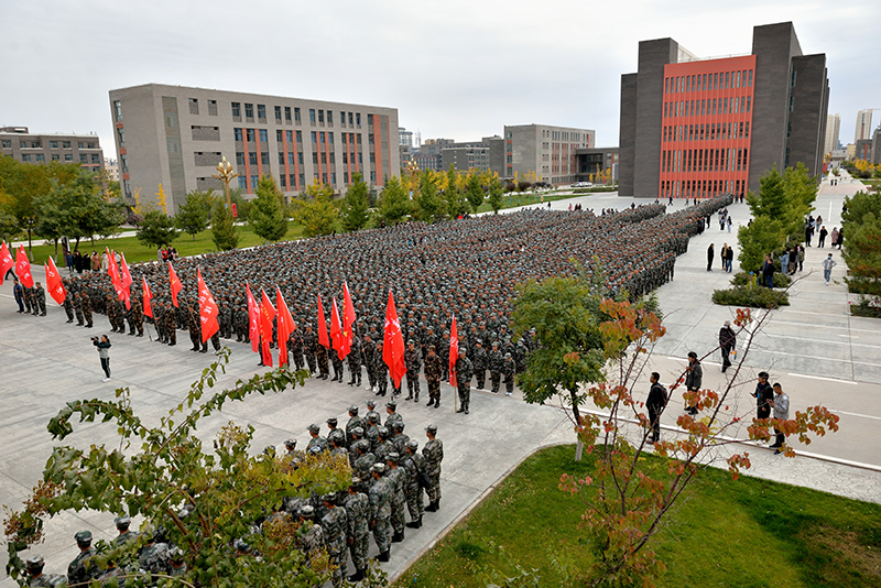 10月13日上午,學院2020級新生軍訓動員大會在大學生活動中心前廣場舉行。學院黨委副書記翟存詳向軍訓團授旗,并宣布新生軍訓開始;31666部隊政治工作部副主任杜太申作動員講話,院領導王永緒、田迎春、何毅、陳曉煜、張開禮出席大會;學院各教學院系負責人、輔導員、班主任及 2020級4339名學生參加了大會。大會由黨委委員、副院長王守云主持。