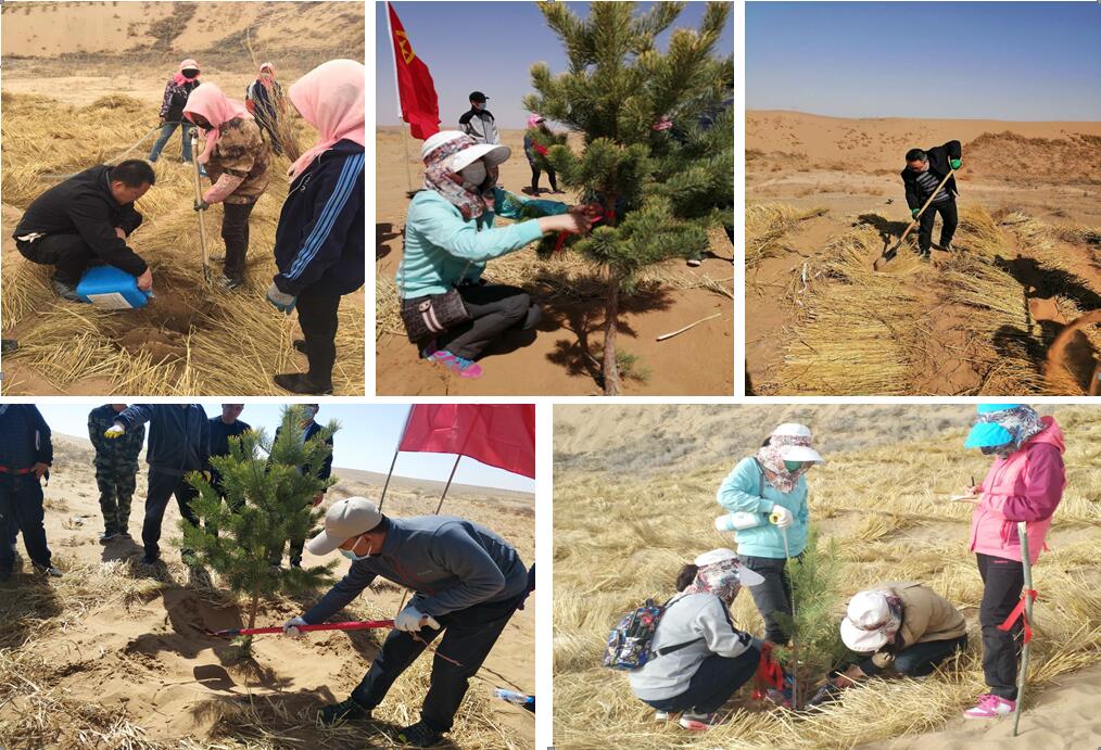 由我院與中科武威新能源研究所合作的淀粉基超級(jí)吸水材料在沙漠植保工程示范試驗(yàn)項(xiàng)目組成員自4月8日起已陸續(xù)赴武威園區(qū)、民勤縣青土湖,涼州區(qū)長(zhǎng)城鎮(zhèn)、古浪八步沙等地推廣應(yīng)用工作,陸續(xù)實(shí)施壓沙、沙生苗木種植、植被樣點(diǎn)監(jiān)測(cè)等,截至目前累計(jì)完成壓沙任務(wù)300畝,苗木種植任務(wù)220畝。