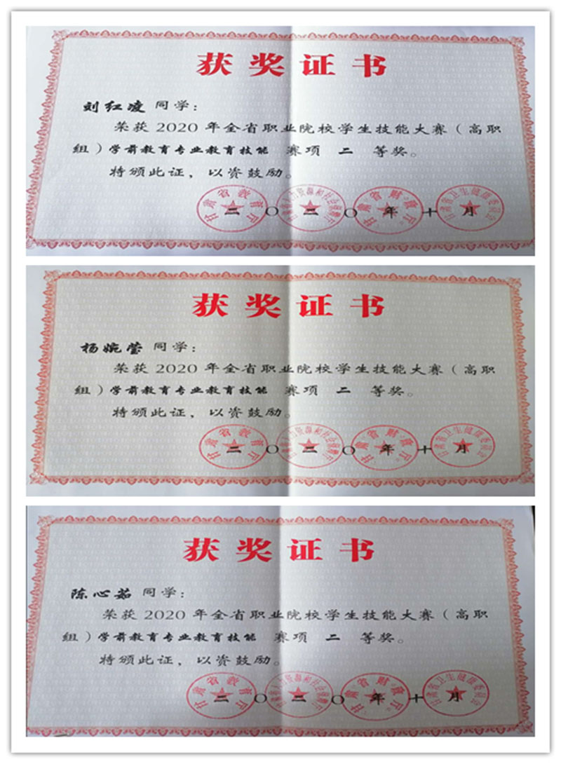2020年10月在蘭州資源環(huán)境職業(yè)技術(shù)學(xué)院舉辦的2020年全省職業(yè)院校學(xué)生技能大賽(高職組)中,人文藝術(shù)教育系參賽的三組同學(xué)憑借深厚的理論基礎(chǔ)和嫻熟的技能操作,在強(qiáng)手如林的選手中脫穎而出,獲得大賽二等獎(jiǎng)1項(xiàng),三等獎(jiǎng)2項(xiàng)。