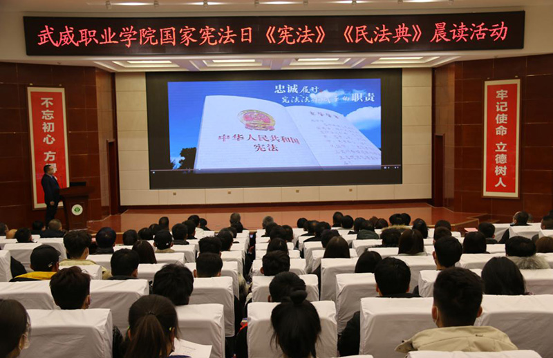 “本憲法以法律的形式確認了中國各族人民奮斗的成果,規(guī)定了國家的根本制度和根本任務,是國家的根本大法,具有最高的法律效力……” 在“12·4”國家第七個憲法日當天,學院舉辦了“憲法、民法典晨讀”活動。伴隨著朗朗的誦讀聲,在場師生莊嚴而肅穆地感受著憲法作為國家根本大法的神圣不可侵犯性。