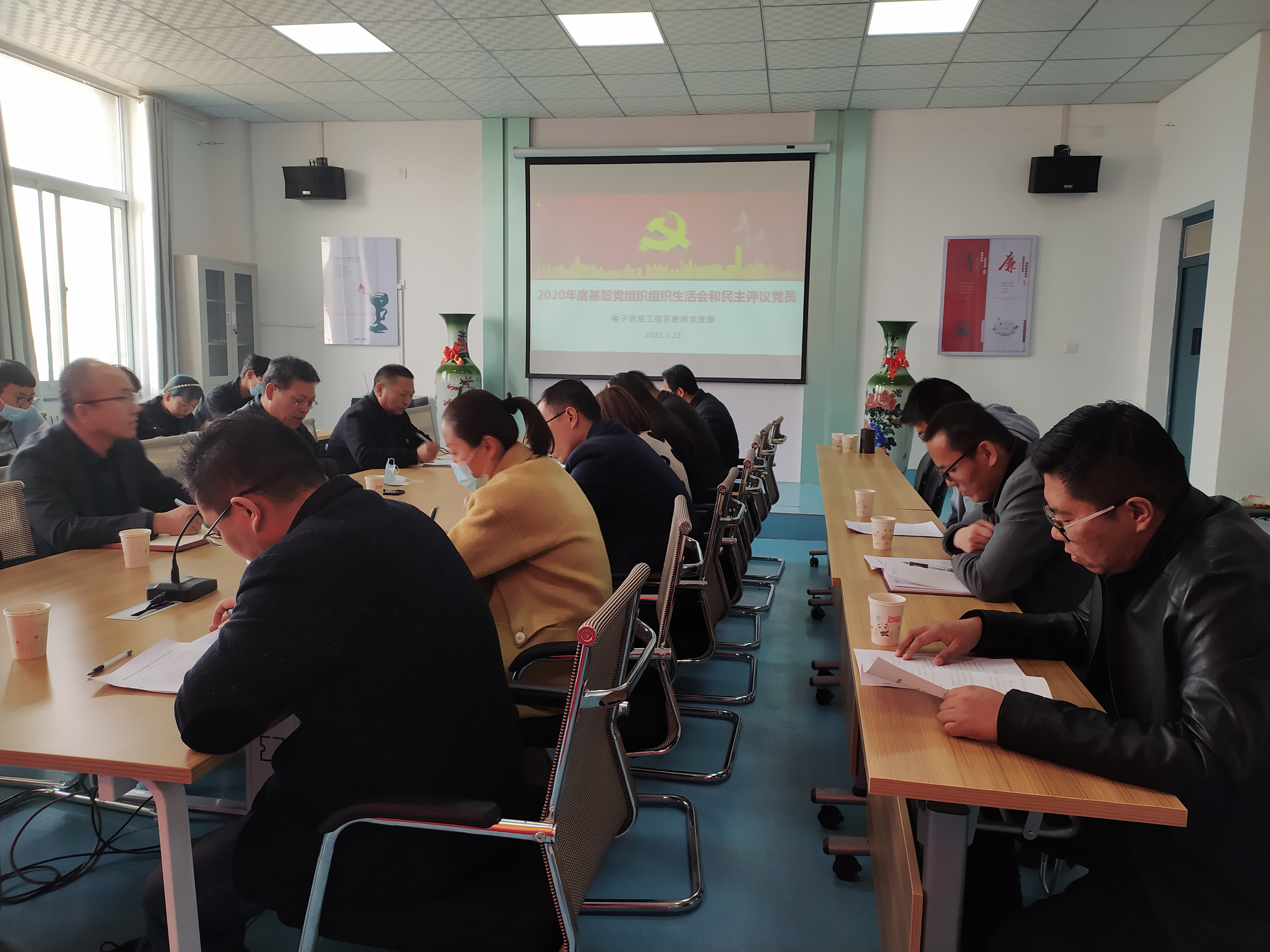 3月23日,電子信息工程系教師黨支部召開2020年度基層黨組織組織生活會,會議由支部書記袁青年同志主持,教師黨支部全體黨員參會,學院第3督導組王永緒、徐永生同志對此次會議進行了全程督導。
