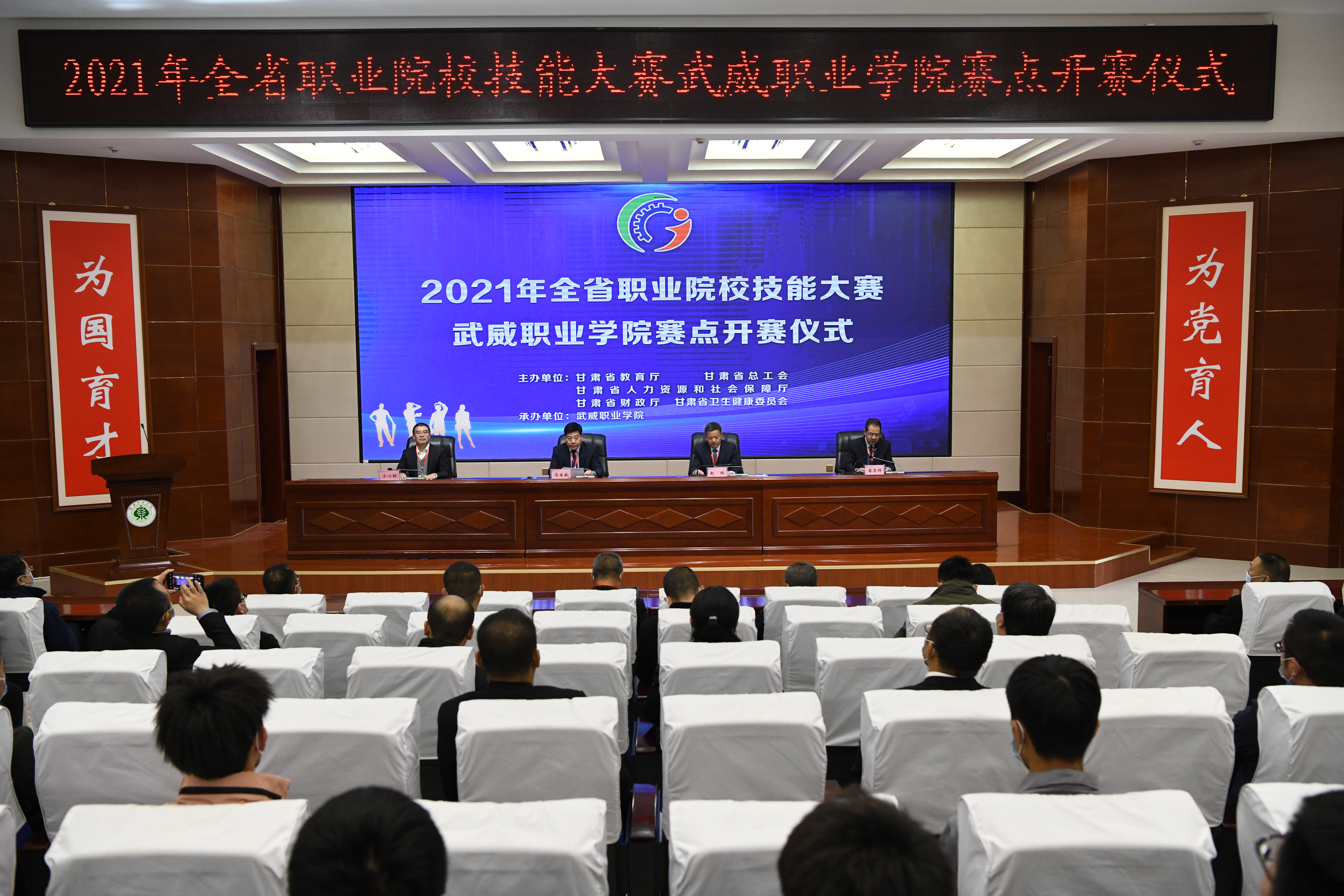 武威市教育局黨組書記、局長馬生威同志宣布2021年全省職業(yè)院校技能大賽武威職業(yè)學(xué)院賽點(diǎn)開賽。
