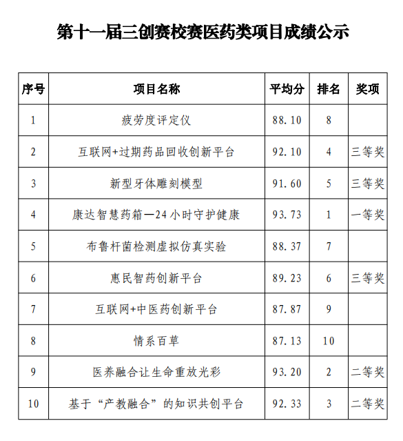 按照第十一屆三創(chuàng)賽省賽組委會要求,學(xué)院于4月24日在創(chuàng)新創(chuàng)業(yè)中心舉辦了校賽,經(jīng)學(xué)生團(tuán)隊申報、現(xiàn)場答辯及專家評審環(huán)節(jié),校賽已圓滿完成。按照校賽方案,一等獎不超過參賽隊數(shù)的 10%,二等獎不超過參賽隊數(shù)的 20%,三等獎不超過參賽隊數(shù)的 30%?,F(xiàn)將第十一屆三創(chuàng)賽校賽獲獎項(xiàng)目成績和獲獎名次予以公示,公示期三日。