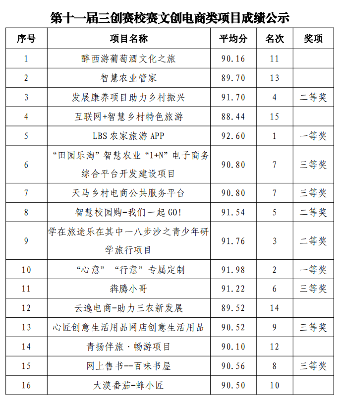 第十一屆三創(chuàng)賽武威職業(yè)學(xué)院校賽擬獲獎項(xiàng)目及成績公示