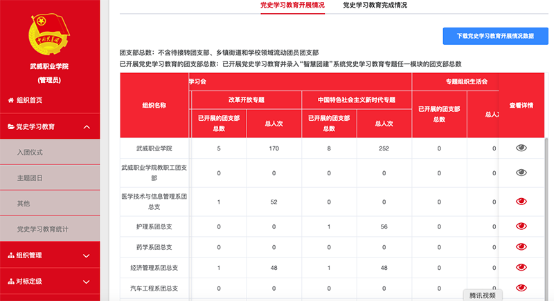 通過智慧團建黨史學習教育專區(qū),可以更好的實現(xiàn)對團組織、團干部、團員黨史學習教育情況的動態(tài)采集,構建全團大數據統(tǒng)計,及時掌握各級團組織和團員學習教育整體進度,有針對性地做好監(jiān)督,實現(xiàn)對團員團干部的網絡化黨史學習指導管理,實時掌握團員需求,創(chuàng)新活動載體,切實推動我院共青團黨史學習教育活動扎實開展。