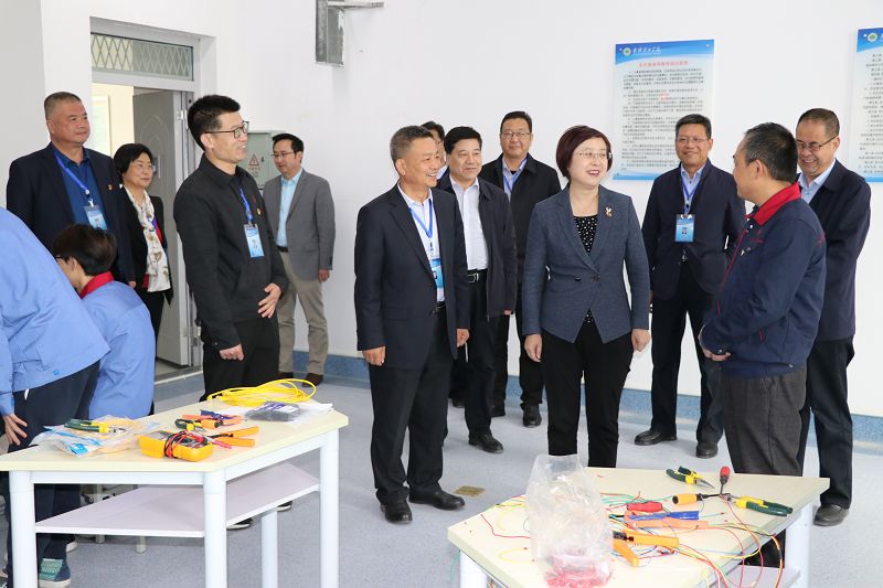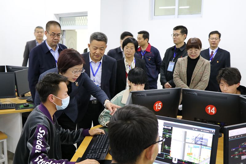 學院黨委書記、院長趙明向王海燕一行詳細匯報了學院基本情況、黨史學習教育、技能甘肅、“雙高計劃”項目建設、人才培養(yǎng)、師資隊伍建設、招生就業(yè)、校企合作、“1+X”證書試點、技能大賽、課程思政改革等情況,重點對與中科院上海應用物理研究所聯(lián)合舉辦中科低碳新能源技術學院情況進行了匯報。王海燕一行實地查看了中科低碳新能源技術學院實驗實訓室,并對積極備戰(zhàn)國賽的師生給予鼓勵。