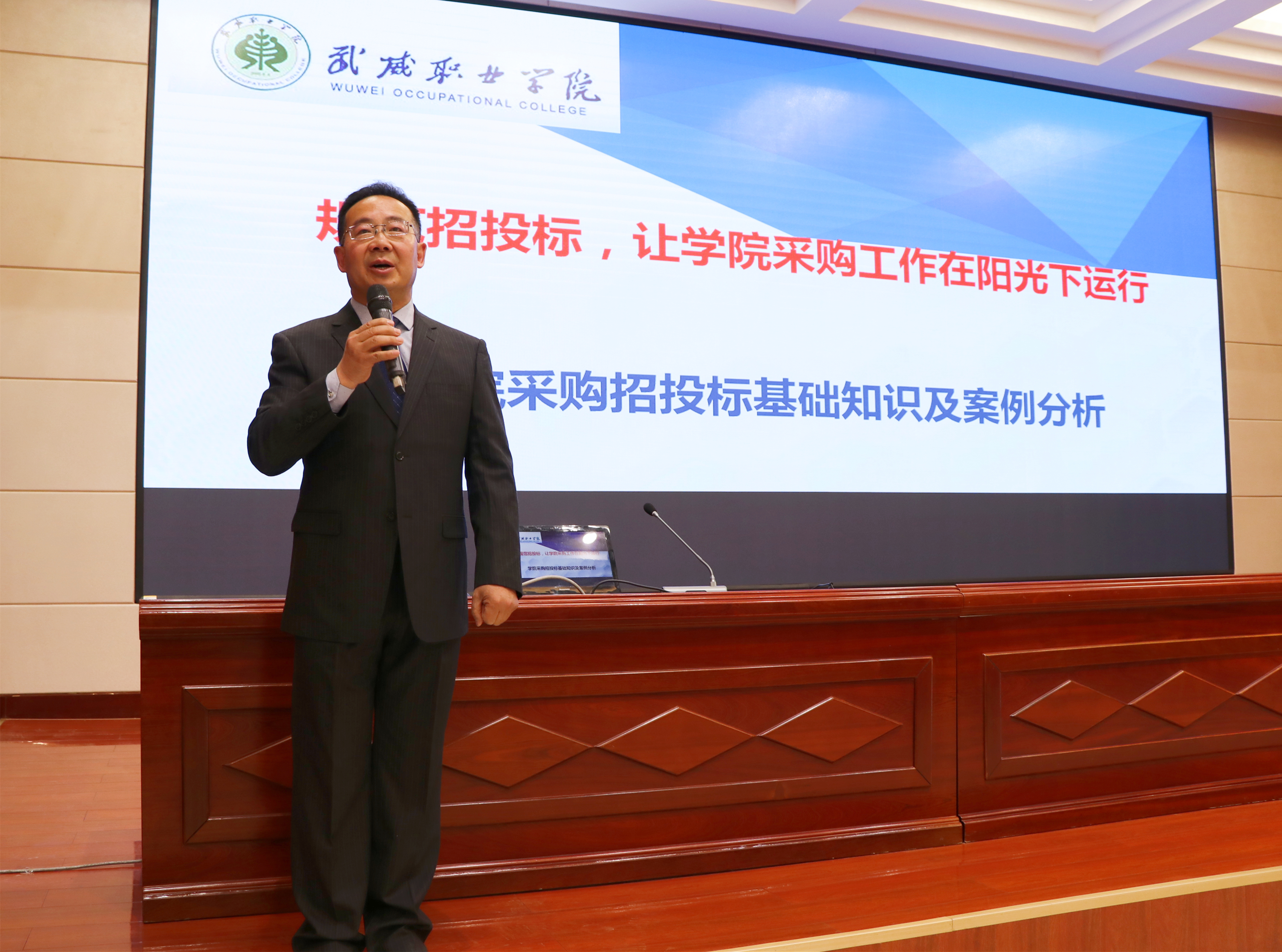 4月28日下午,學(xué)院第一期廉政知識(shí)講座在菁英廳開(kāi)講。邀請(qǐng)學(xué)院招投標(biāo)專(zhuān)家、工會(huì)主席金玉龍副教授作了“規(guī)范招投標(biāo),讓學(xué)院采購(gòu)工作在陽(yáng)光下運(yùn)行”的專(zhuān)題講座。學(xué)院黨委書(shū)記、院長(zhǎng)趙明、黨委副書(shū)記翟存祥、副院長(zhǎng)王永緒、紀(jì)委書(shū)記、監(jiān)察專(zhuān)員陳曉煜、副院長(zhǎng)張開(kāi)禮,學(xué)院紀(jì)委委員、各部門(mén)、各教學(xué)院系負(fù)責(zé)人,學(xué)院招投標(biāo)專(zhuān)家,各基層黨支部紀(jì)檢委員、計(jì)財(cái)處、后勤處、質(zhì)管辦、基建處、紀(jì)檢監(jiān)察部門(mén)全體干部職工參加講座。講座由陳曉煜主持。