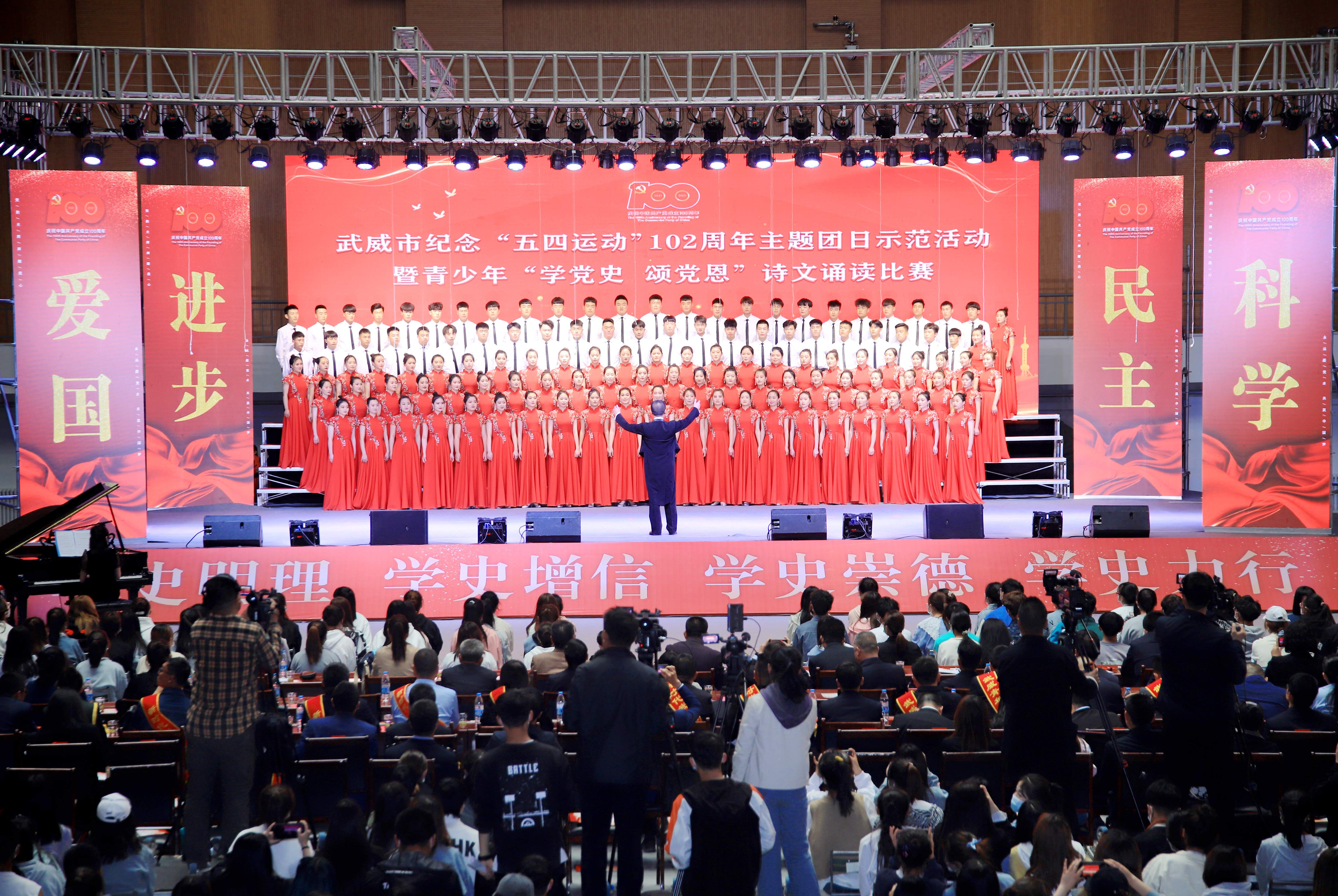 今年是中國共產(chǎn)黨成立100周年,也是五四運(yùn)動102周年。為傳承革命精神,大力弘揚(yáng)愛國、進(jìn)步、民主、科學(xué)的偉大五四精神,以實際行動迎接黨的百年華誕,深化黨史學(xué)習(xí)教育,牢記青年初心使命,堅定不移感黨恩、強(qiáng)信念、跟黨走,4月29日下午,武威市青少年“學(xué)黨史、頌黨恩”詩文誦讀比賽在我院體育館舉行。