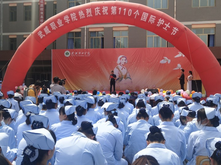 在第110個(gè)國(guó)際護(hù)士節(jié)到來(lái)之際,為慶祝中國(guó)共產(chǎn)黨百年華誕,繼承和弘揚(yáng)南丁格爾救死扶傷的人道主義精神和為護(hù)理事業(yè)無(wú)私奉獻(xiàn)的高尚品質(zhì),強(qiáng)化我院護(hù)生職業(yè)理念和使命擔(dān)當(dāng),推動(dòng)我院護(hù)理事業(yè)不斷向前發(fā)展,助力學(xué)院“雙高”建設(shè),5月11日下午,學(xué)院在明遠(yuǎn)樓北廣場(chǎng)舉辦5.12國(guó)際護(hù)士節(jié)慶祝活動(dòng)。學(xué)院副院長(zhǎng)王永緒、張開(kāi)禮、武威市區(qū)部分實(shí)習(xí)醫(yī)院護(hù)理部、科教科負(fù)責(zé)人及學(xué)院相關(guān)處室領(lǐng)導(dǎo)出席本次活動(dòng),護(hù)理系師生1600余人參加了本次活動(dòng)。