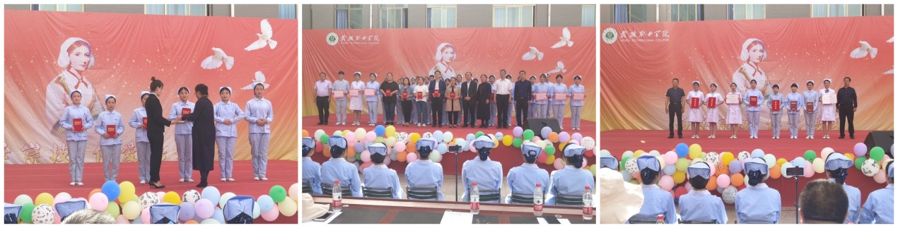 頒獎(jiǎng)儀式激勵(lì)同學(xué)們銳意進(jìn)取。伴隨著白衣天使之歌的音樂(lè),學(xué)院領(lǐng)導(dǎo)向2021年甘肅省護(hù)理技能大賽獲獎(jiǎng)選手及學(xué)院第七屆護(hù)理技能大賽獲獎(jiǎng)的團(tuán)體和個(gè)人表示熱烈的祝賀,同時(shí)頒發(fā)獎(jiǎng)狀和榮譽(yù)證書(shū)并合影留念。