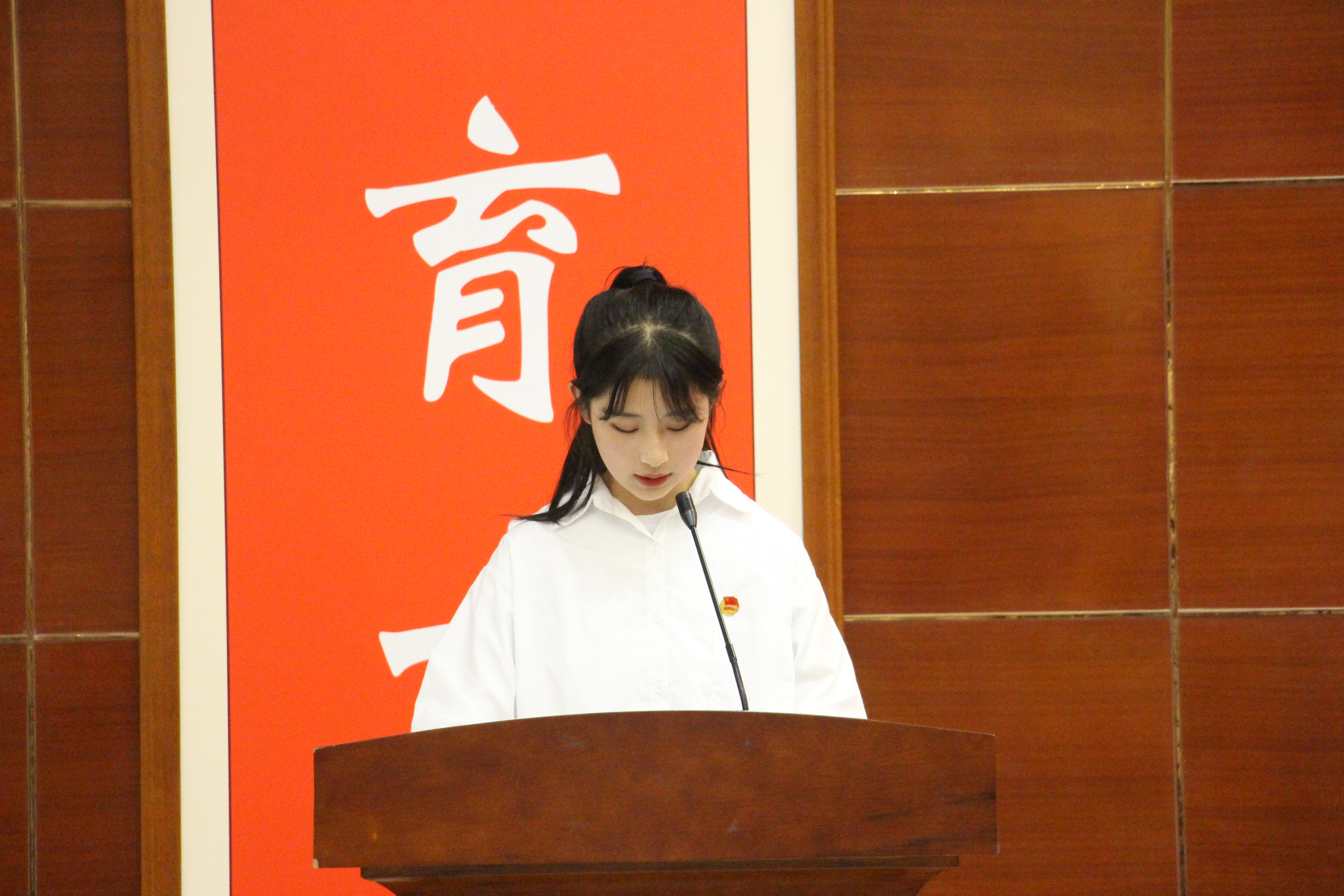 2020級(jí)護(hù)理(11)班王珂同學(xué)作為新團(tuán)員代表發(fā)言,她表示能夠成為一名共青團(tuán)員十分光榮,她號(hào)召全體新團(tuán)員,珍惜青春韶華、勇?lián)鷷r(shí)代重任,讓青春在為黨、為祖國、為人民的不懈奮斗中綻放絢麗之花。