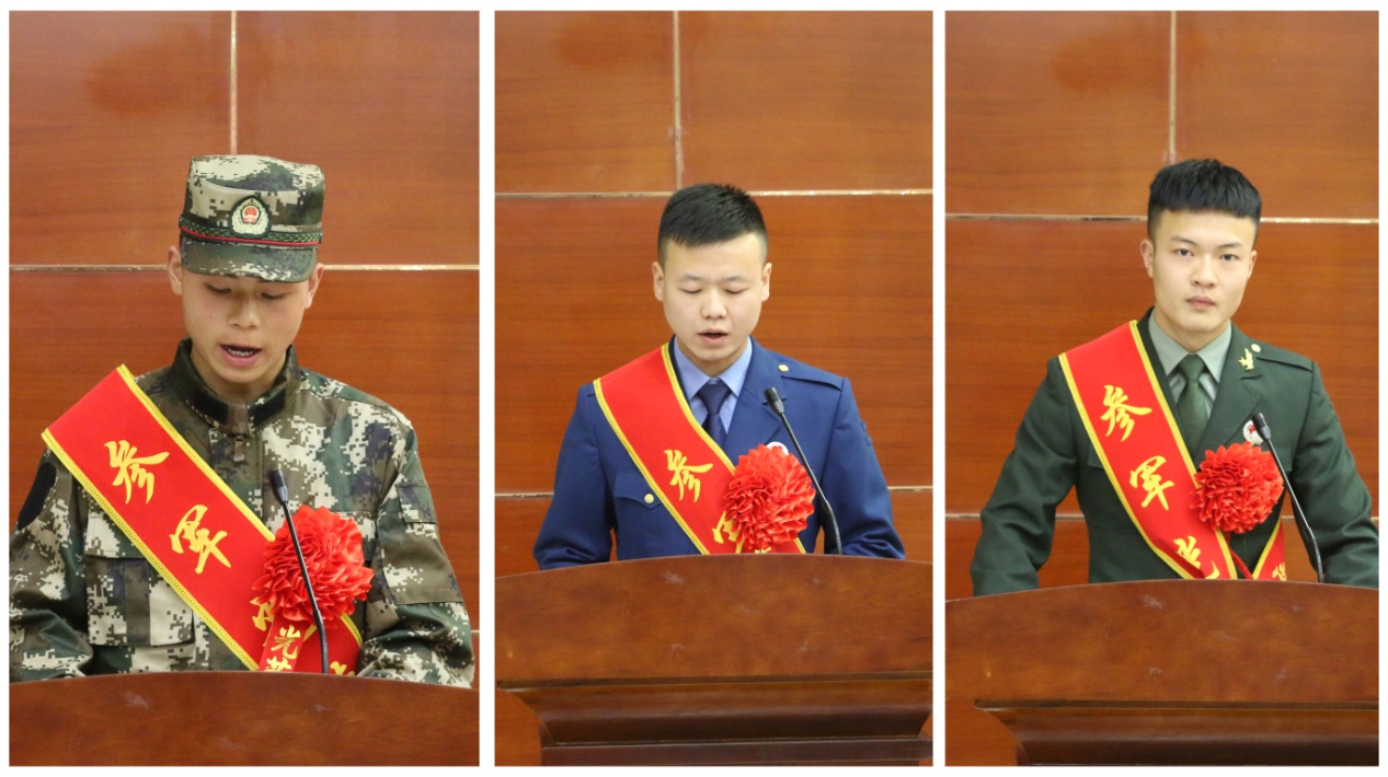 機械制造系學生張進和電子信息工程系學生藺煜明分別代表2019年、2020年退役復學學生發(fā)言,他們講述了自己的從軍經(jīng)歷和退伍感想,表達了“退役不退志、退伍不褪色”的學習生活態(tài)度,并向新入伍的同學們送去了真誠的祝福。