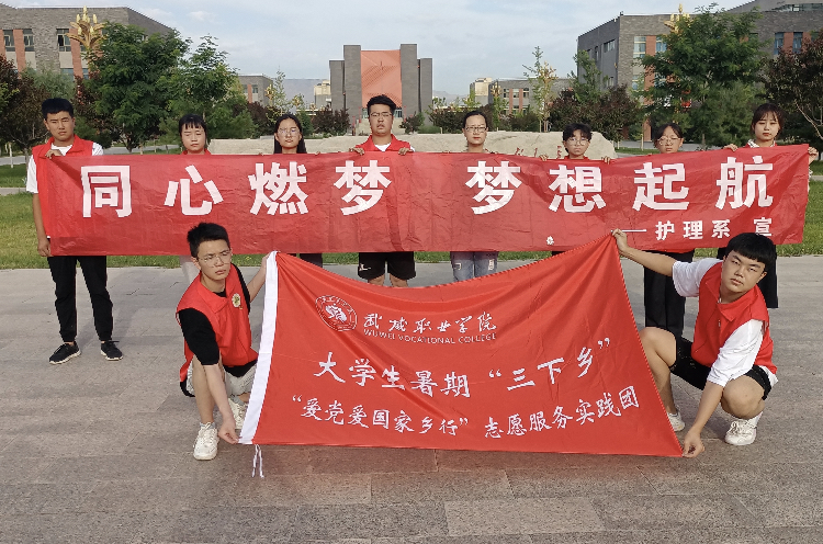 為認(rèn)真貫徹落實(shí)習(xí)近平總書記在慶祝中國共產(chǎn)黨成立100周年大會(huì)上的講話精神,不斷深化實(shí)踐育人,引領(lǐng)學(xué)生在社會(huì)實(shí)踐中受教育、長才干、作貢獻(xiàn),培養(yǎng)學(xué)生家國情懷和實(shí)踐能力,著眼于青年了解認(rèn)知鄉(xiāng)村情況,踴躍參與鄉(xiāng)村振興戰(zhàn)略實(shí)施,同時(shí)加強(qiáng)對(duì)大學(xué)生黨史、新中國史教育,鼓勵(lì)大學(xué)生青年志愿者向社區(qū)報(bào)道,7月15-21日,由武威職業(yè)學(xué)院護(hù)理系一名指導(dǎo)老師與本專業(yè)九位青年志愿者組成的“愛國家鄉(xiāng)行”一行十人分別前往武威市涼州區(qū)雙城鎮(zhèn)南安社區(qū)和敬老院開展主題為“同心燃?jí)?、?mèng)想起航”的暑期“三下鄉(xiāng)”活動(dòng)。在炎炎夏日,志愿者的服務(wù)為社區(qū)居民和敬老院的老人帶去了一份愛心、一絲暖意。