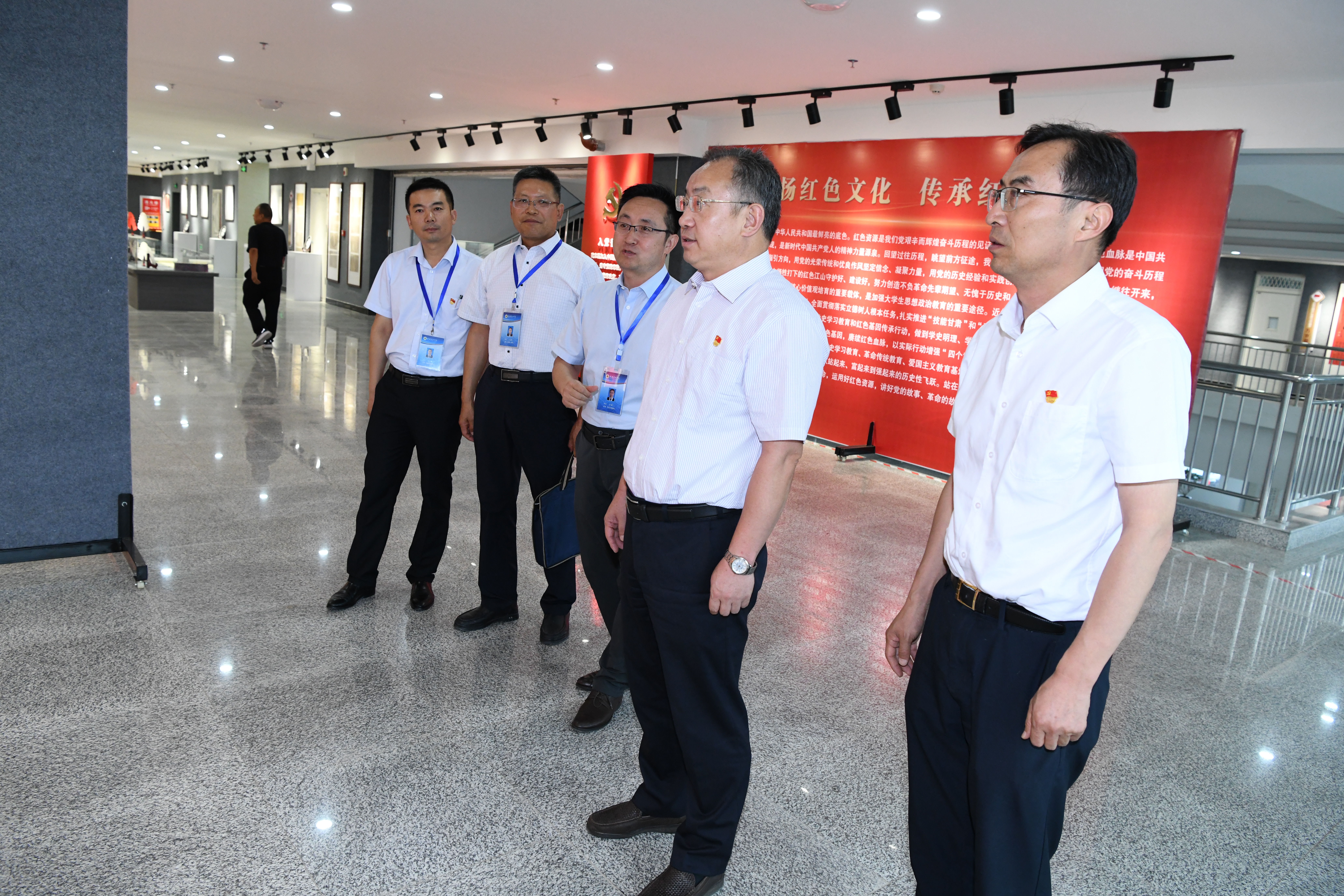 會(huì)后,張新平一行在學(xué)院領(lǐng)導(dǎo)的陪同下參觀了學(xué)院紅色文化藝術(shù)館,組織人事處處長任陶同志做講解。