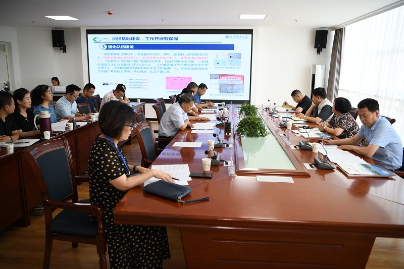 首先召開(kāi)了“甘肅省語(yǔ)言文字推廣基地建設(shè)工作匯報(bào)會(huì)”,田迎春同志做了工作匯報(bào)。省語(yǔ)委專家聽(tīng)取匯報(bào)、查看基地建設(shè)支撐資料,并就基地建設(shè)經(jīng)費(fèi)保障、推廣活動(dòng)的內(nèi)容及形式等方面提出問(wèn)題,學(xué)院相關(guān)負(fù)責(zé)同志作出詳細(xì)解答。匯報(bào)、提問(wèn)結(jié)束后,李晶同志對(duì)學(xué)院基地建設(shè)中取得的成績(jī)給予了肯定,同時(shí)也指出了建設(shè)過(guò)程中存在的問(wèn)題與不足。他強(qiáng)調(diào)在以后的工作中要充分利用學(xué)院師資力量,結(jié)合武威當(dāng)?shù)靥厣粩鄤?chuàng)新語(yǔ)言文字推廣工作的形式和內(nèi)容,形成品牌特色,將推廣工作從學(xué)院推向全市,為武威經(jīng)濟(jì)社會(huì)發(fā)展做出更多貢獻(xiàn)。趙明同志代表學(xué)院向省語(yǔ)委專家表達(dá)了對(duì)我院基地建設(shè)工作指導(dǎo)的感謝,并表示在今后作中我院將發(fā)揮優(yōu)勢(shì),彌補(bǔ)不足,進(jìn)一步加強(qiáng)基地建設(shè),在學(xué)院語(yǔ)言文字工作方民面取得新突破,引領(lǐng)當(dāng)?shù)卣Z(yǔ)言文字事業(yè)發(fā)展。
