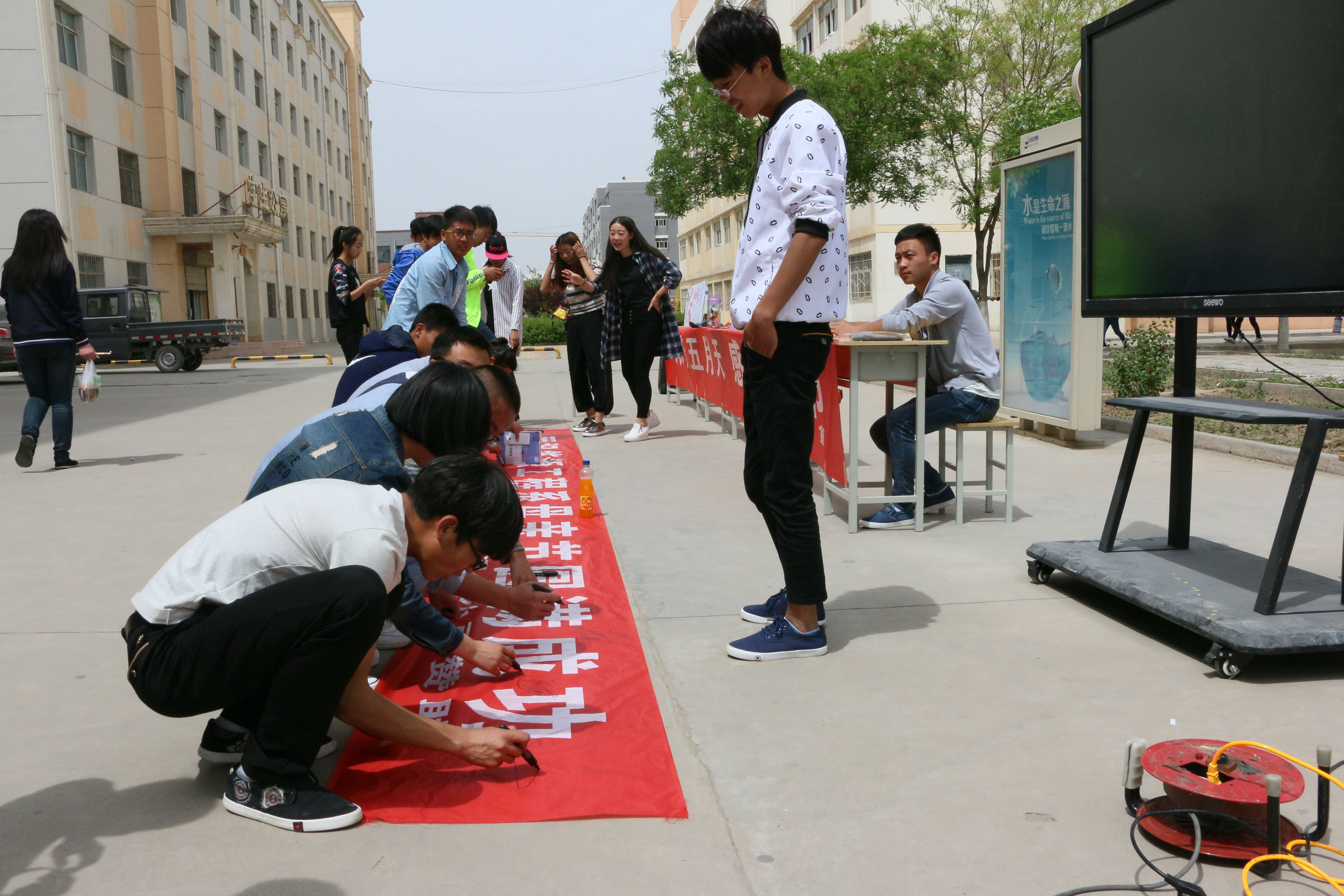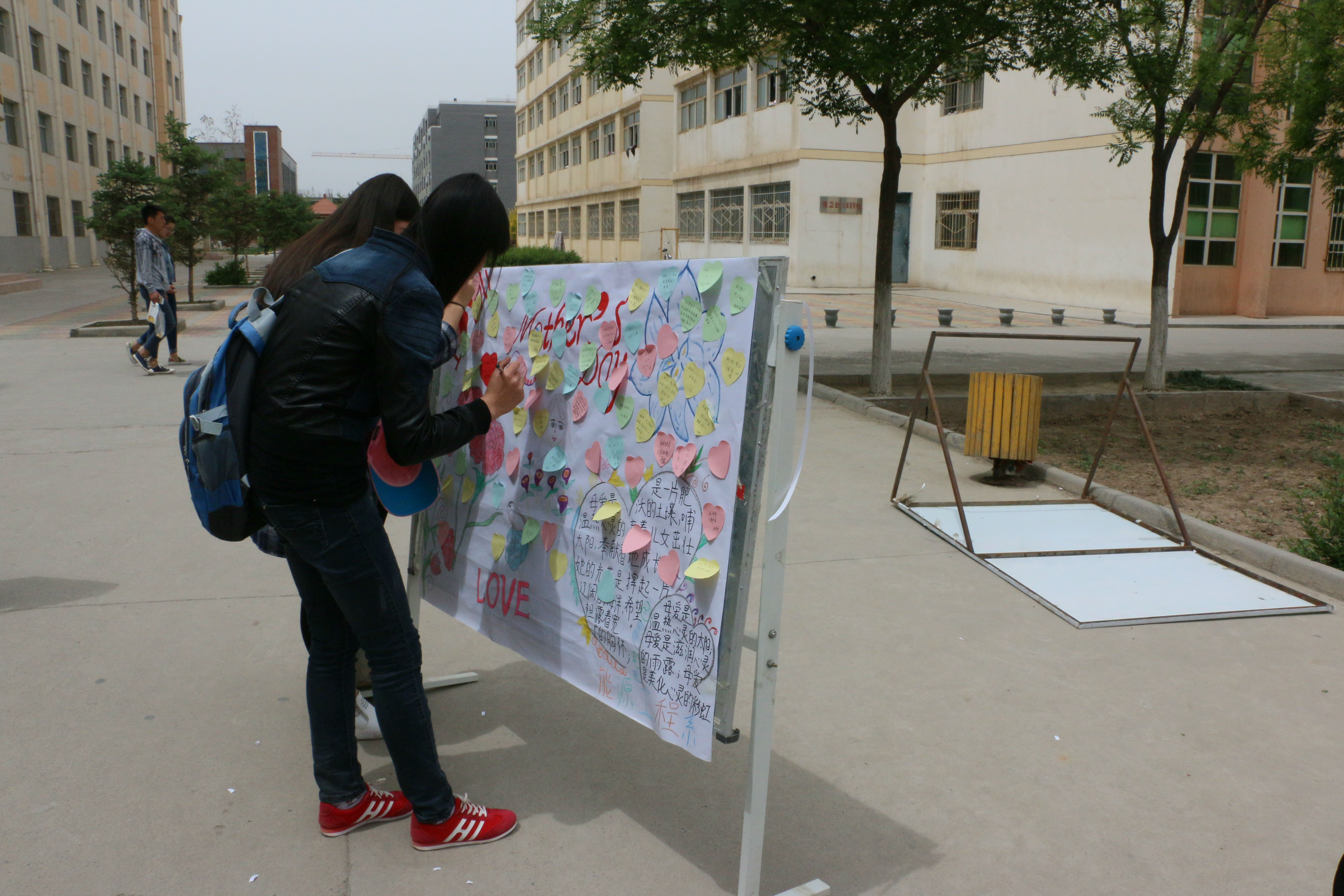 今天早晨十一點左右,能源系全體學(xué)生會成員以為這次的活動準備好了一切,有母親節(jié)的海報、母親節(jié)許愿瓶、對媽媽想說的話的展板、以及自己對媽媽祝福的簽名