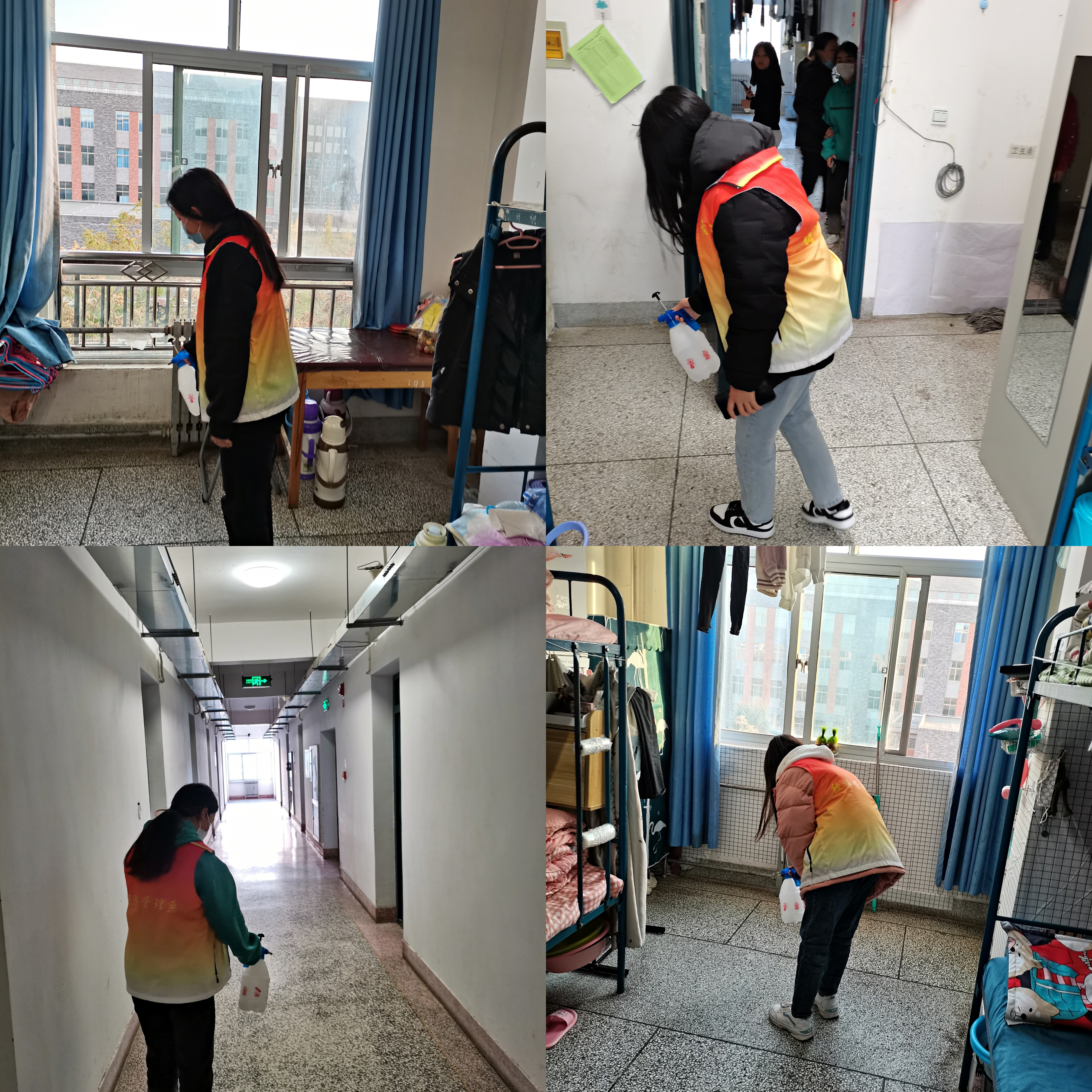 志愿服務(wù)過(guò)程中,志愿者們勤勤懇懇、一絲不茍,充分發(fā)揚(yáng)了勤勞能干不怕苦的志愿精神。同學(xué)們也積極配合志愿者的消毒工作,保證了宿舍消毒工作的順利開(kāi)展。
