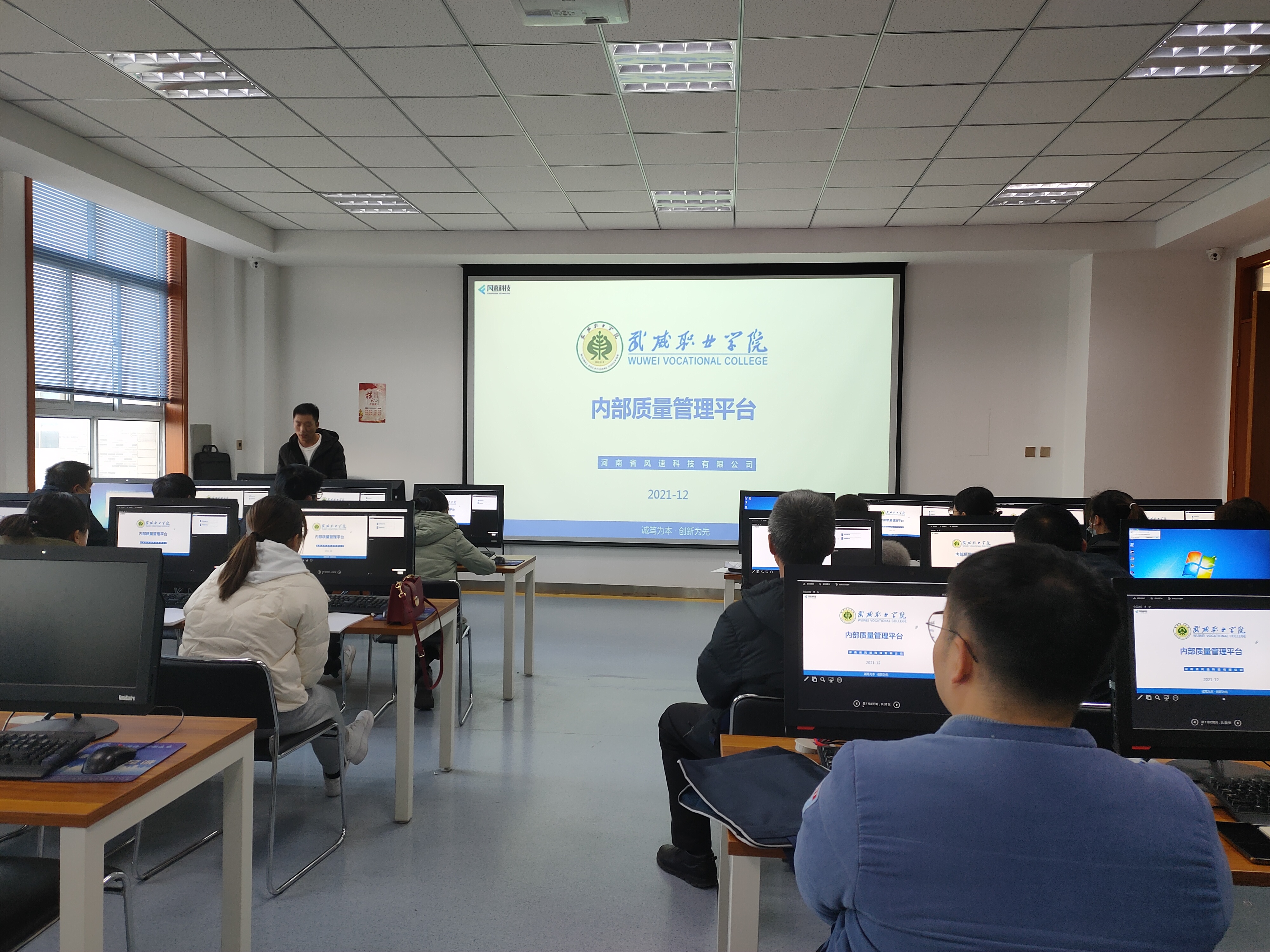 風速科技有限公司項目經(jīng)理徐來彬對參會教師進行了培訓。重點介紹了內部質量管理平臺整體架構、主要功能、任務提取、上傳、轉辦,任務辦理與審核、通報、文檔庫上傳與使用、績效考核等,并進行現(xiàn)場操作演示,就參會教師存在的問題進行了溝通交流。