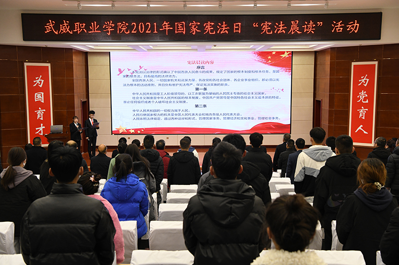 “本憲法以法律的形式確認(rèn)了中國(guó)各族人民奮斗的成果,規(guī)定了國(guó)家的根本制度和根本任務(wù),是國(guó)家的根本大法,具有最高的法律效力……” 在“12·4”國(guó)家第八個(gè)憲法日當(dāng)天,學(xué)院舉辦了“憲法晨讀”活動(dòng)。伴隨著朗朗的誦讀聲,在場(chǎng)師生莊嚴(yán)而肅穆地感受著憲法作為國(guó)家根本大法的神圣不可侵犯性。