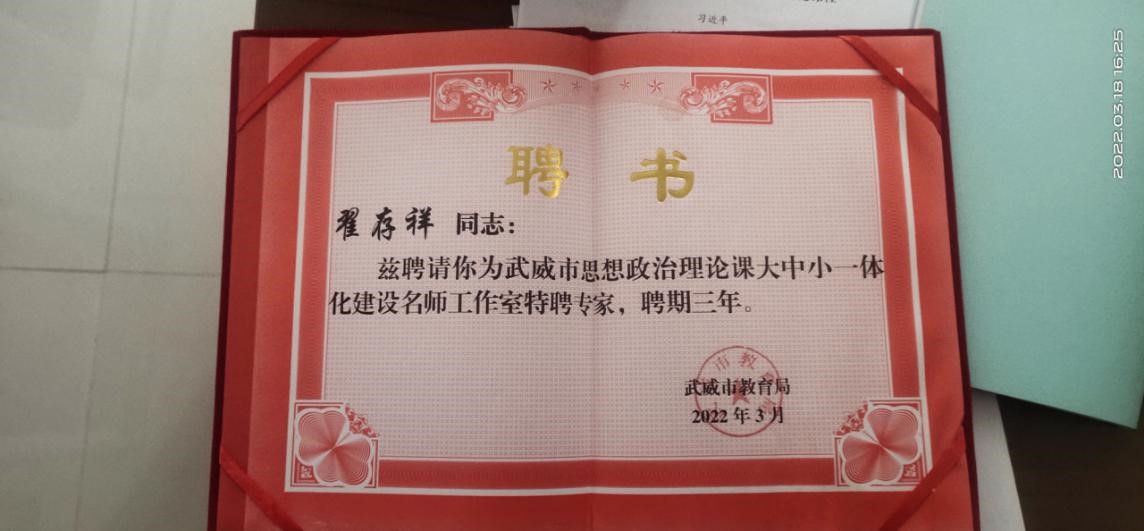 會議學(xué)習(xí)了習(xí)近平總書記在學(xué)校思想政治理論課教師座談會上的重要講話精神,總結(jié)了近年來武威市思政課建設(shè)取得的成績,各縣區(qū)交流了經(jīng)驗做法,安排部署了下一階段工作。同時,舉行了武威市思想政治理論課大中小一體化建設(shè)名師工作室授牌和名師工作室特聘專家聘任儀式。學(xué)校思政課名師工作室負(fù)責(zé)人、黨委副書記翟存祥教授被聘為武威市思想政治理論課大中小一體化建設(shè)名師工作室特聘專家。