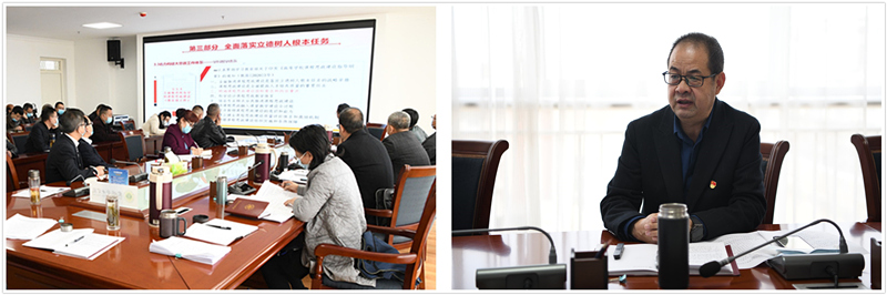 會議傳達(dá)學(xué)習(xí)了習(xí)近平總書記在學(xué)校思政課教師座談會上發(fā)表的重要講話《思政課是落實立德樹人根本任務(wù)的關(guān)鍵課程》。黨委副書記、省級思政課名師工作室負(fù)責(zé)人翟存祥圍繞學(xué)習(xí)貫徹習(xí)近平總書記講話精神作了專題輔導(dǎo)報告。