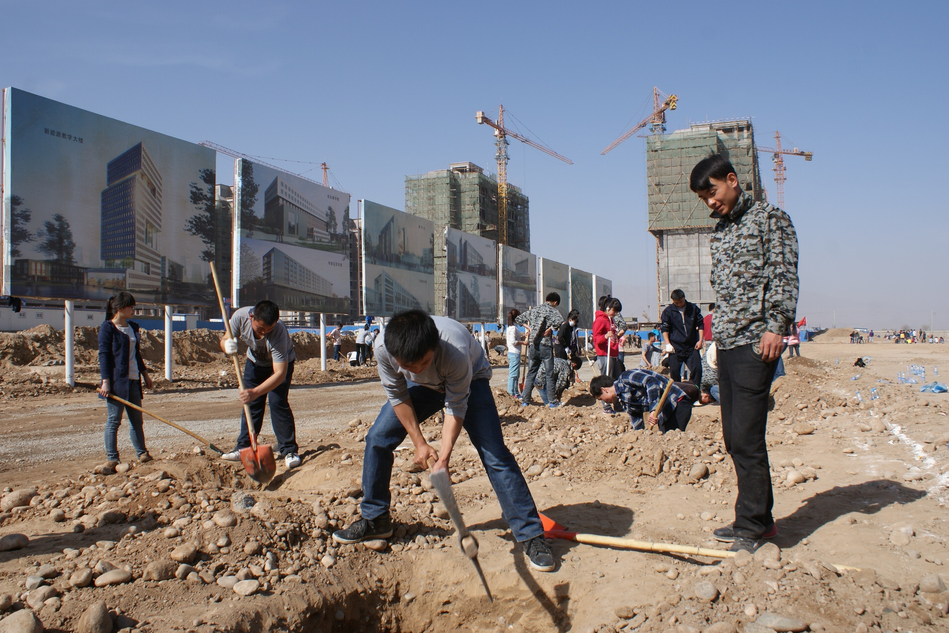 植樹(shù)現(xiàn)場(chǎng)一派忙碌的景象,大家有秩序地領(lǐng)取工具,三五一組,分工明確,揮動(dòng)鎬頭,掘土挖坑,再將一顆顆樹(shù)苗埋窩、培土、踩實(shí)、澆灌。經(jīng)過(guò)三天的緊張勞作,我系師生在指定區(qū)域完成了280個(gè)樹(shù)坑的開(kāi)挖和樹(shù)木栽植任務(wù)。