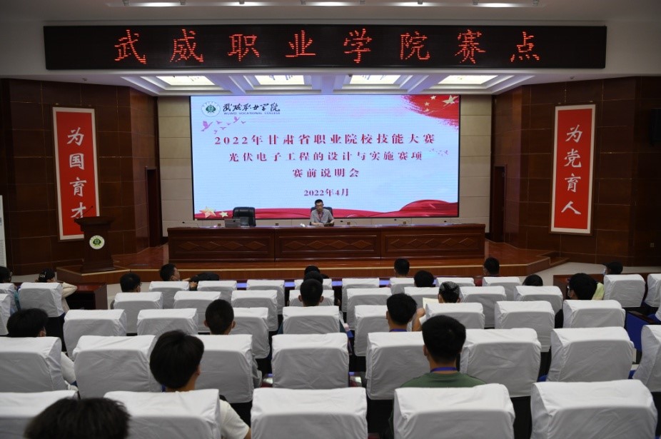 4月26日,2022年甘肅省職業(yè)院校技能大賽高職學(xué)生組“光伏電子工程的設(shè)計(jì)與實(shí)施賽項(xiàng)”成功在我校舉行。本次大賽由甘肅省教育廳、甘肅省人力資源和社會(huì)保障廳、甘肅省財(cái)政廳、甘肅省衛(wèi)生健康委員會(huì)、甘肅省總工會(huì)聯(lián)合主辦,武威職業(yè)學(xué)院是主要賽點(diǎn)之一,共承辦四個(gè)賽項(xiàng)。來自全省9所高職院校的15組共計(jì)45名選手參加了光伏電子工程的設(shè)計(jì)與實(shí)施賽項(xiàng),互相切磋技能,展示工匠風(fēng)采。