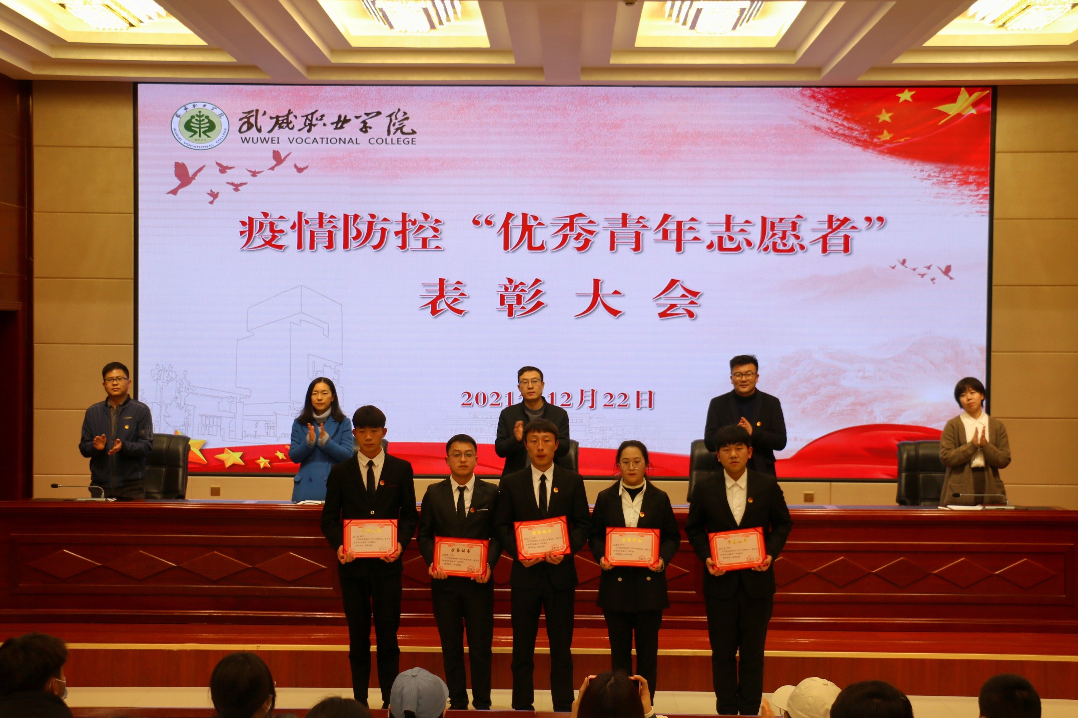 在表彰大會(huì)上,宣讀了《武威職業(yè)學(xué)院關(guān)于對(duì)疫情防控期間優(yōu)秀青年志愿者進(jìn)行通報(bào)表?yè)P(yáng)的決定》,為疫情防控期間優(yōu)秀青年志愿者代表頒發(fā)了榮譽(yù)證書。