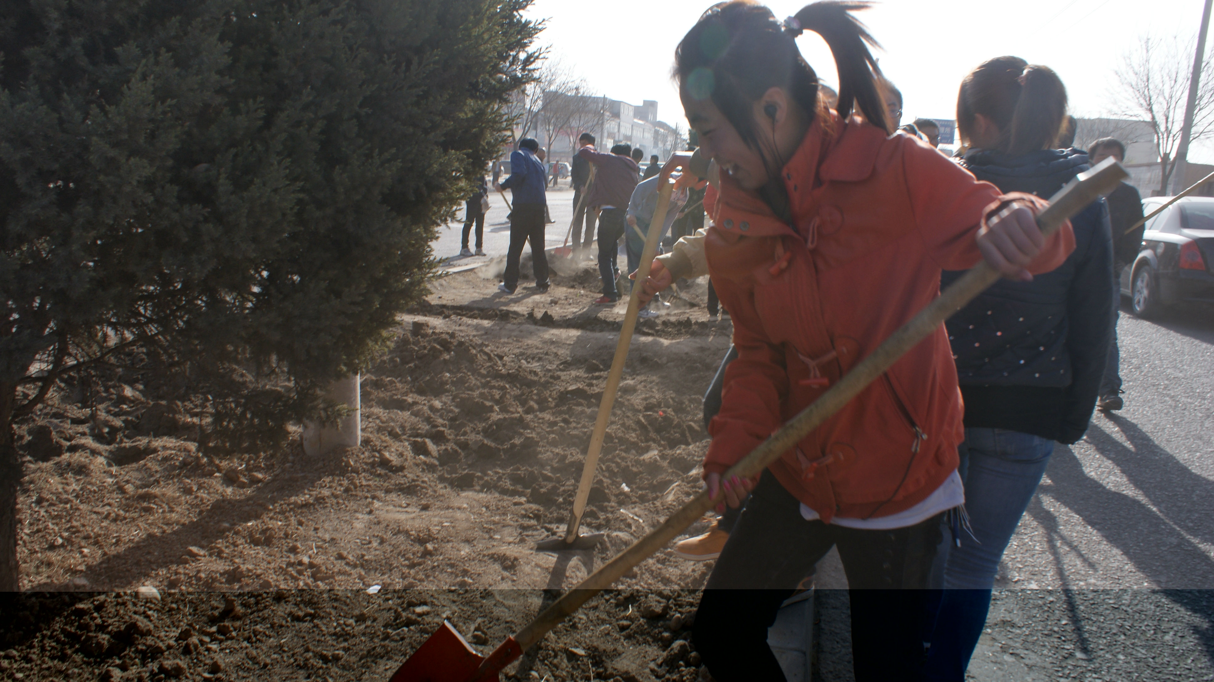 大家早早的來(lái)到了目的地,很快投入了植樹和凈化街道的隊(duì)伍中。同學(xué)們井然有序,手持鐵鍬,一鍬一鍬的鏟土,一片一片的清理大街,干勁十足。同學(xué)們無(wú)一不閃爍著汗珠,露出幸福的笑容。
