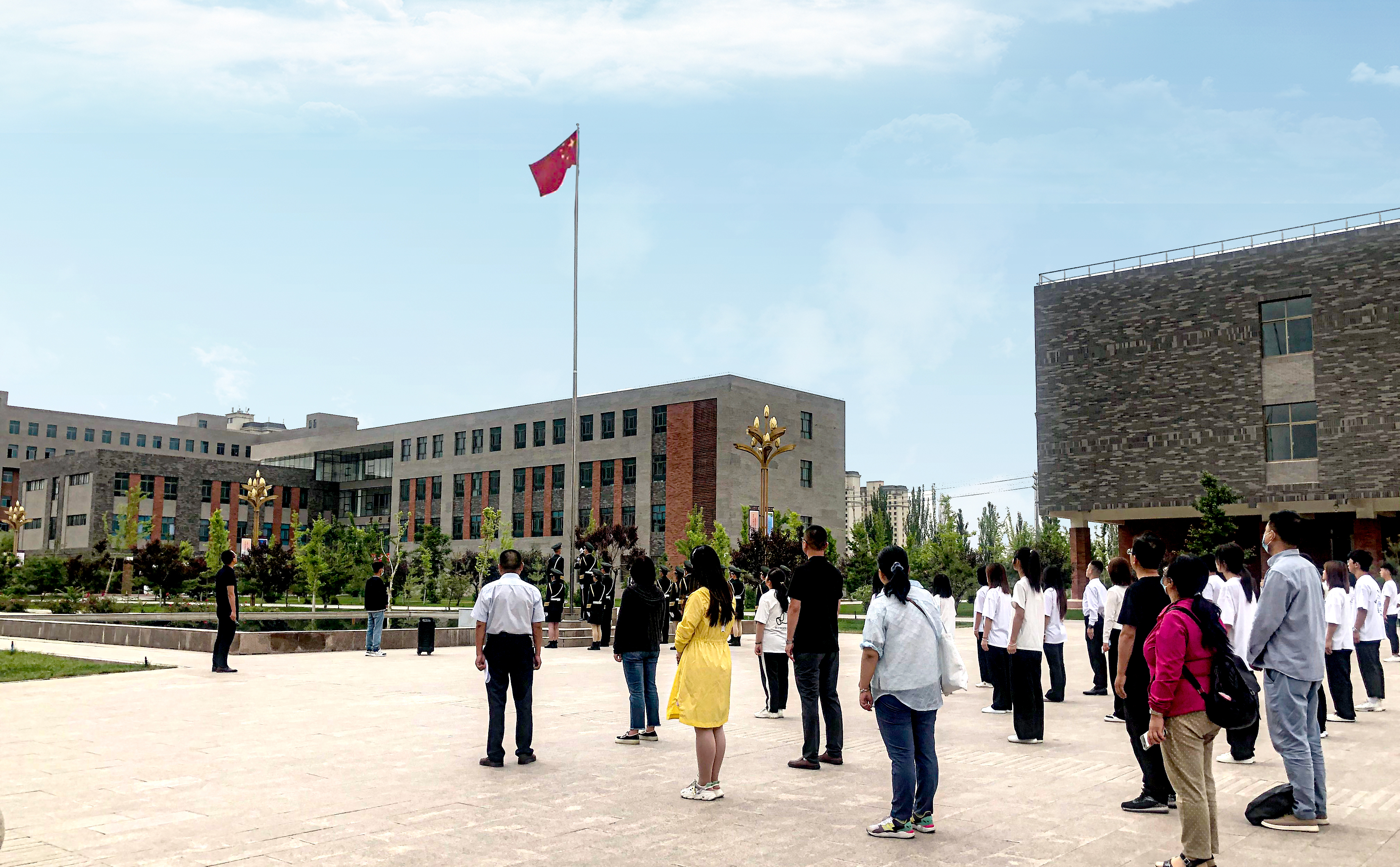 6月20日早上7點,信息技術(shù)學(xué)院在圖書館廣場舉行升國旗儀式,黨總支書記袁青年、院長李亞梅、全體教師及部分學(xué)生代表參加了此次升旗儀式。