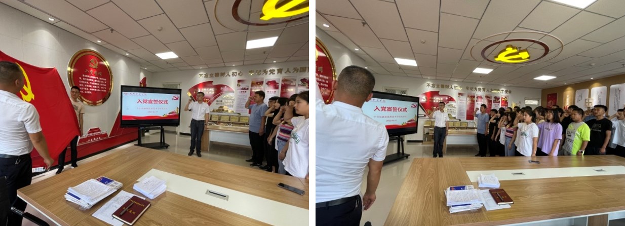 在“七一”來臨之際,為加強黨員教育、增強黨性觀念,中科低碳新能源技術(shù)學院黨總支于2022年6月27日下午在能源樓六樓黨員活動室組織開展了新黨員入黨宣誓儀式。學院黨總支全體黨員以及師生預(yù)備黨員參加宣誓儀式。