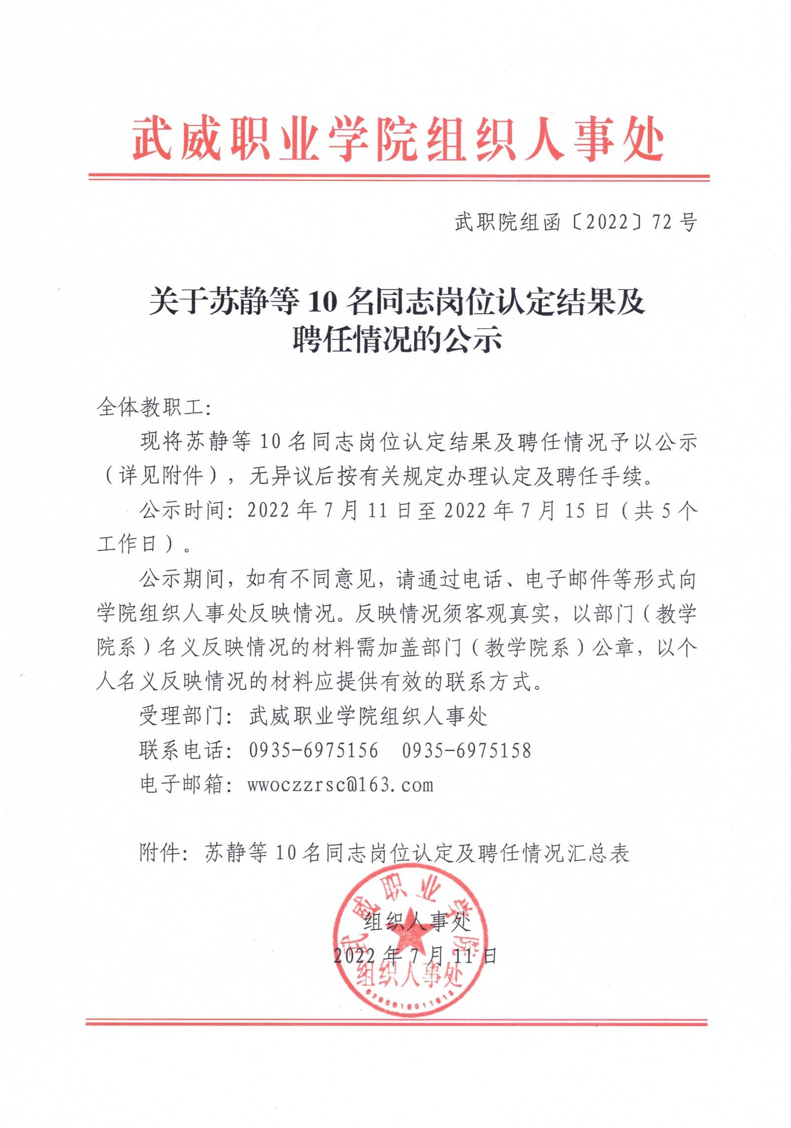 關于蘇靜等10名同志崗位認定結果及聘任情況的公示